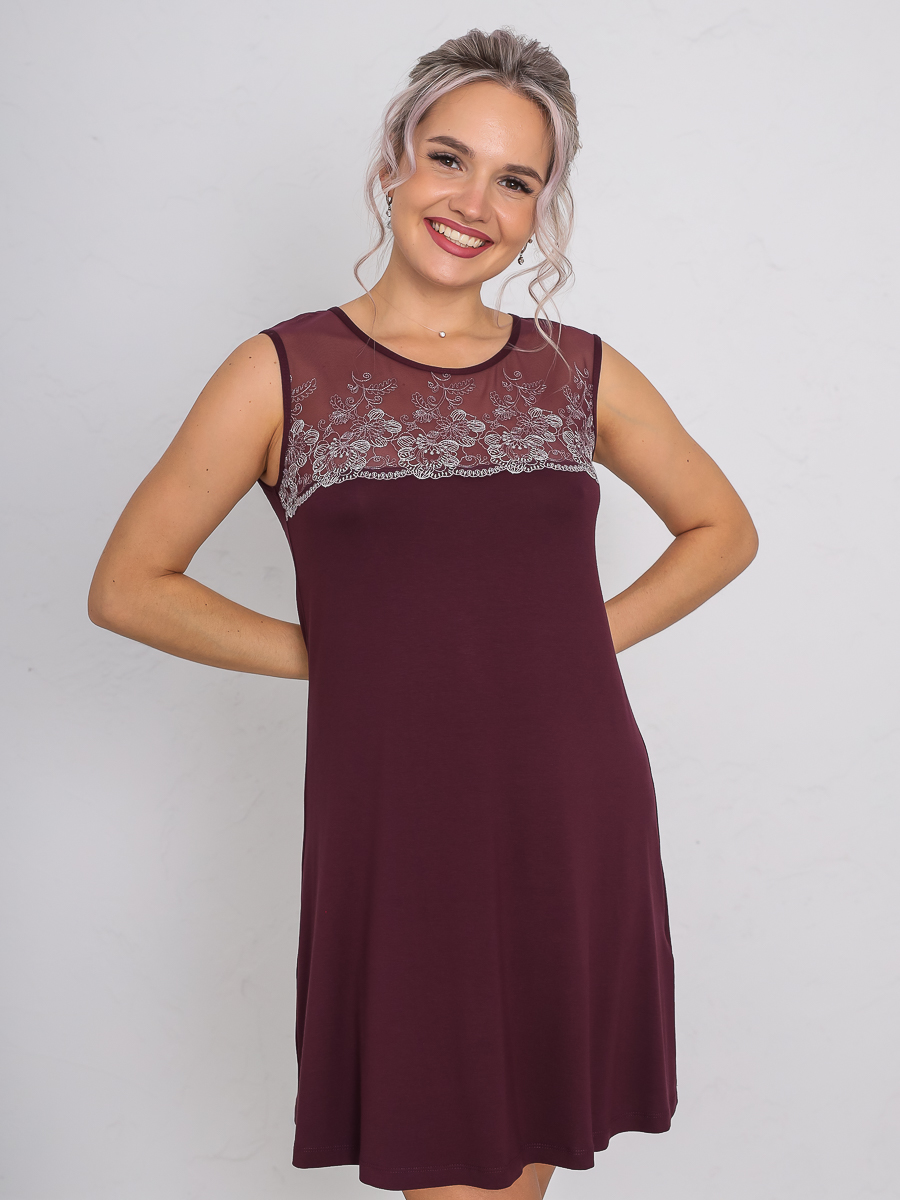 Ночная сорочка женская без рукава - идеальное решение для женщин и девушек, которые ценят комфорт и стиль. Ночнушка короткая, выполнена из вискозного полотна, состав ткани (92 % вискоза и 8% эластан) и обеспечивает оптимальный уровень воздухопроницаемости, позволяя коже дышать во время сна. Главная особенность этой сорочки - вырез горловины с округлой формой, который украшен сеткой, выполненной из высококачественного кружева премиум класса и прекрасно подчеркнет Вашу женственность. Это добавляет модели нежности и элегантности, придавая Вам роскошный и соблазнительный образ. Сорочка предлагается в больших размерах, чтобы каждая женщина смогла найти свой идеальный вариант. Она идеально сочетается с любым типом фигуры, подчеркивая все ваши достоинства и скрывая недостатки. Погрузитесь в мир комфорта и стиля с этой рубашкой больших размеров. Она станет вашим незаменимым спутником для приятных и уютных моментов перед сном или утренних часов отдыха. Стильная, эротичная и сексуальная спальная вещь для дома. Цвет: бордо; Материал: вискоза; Состав: 92% вискоза, 8% эластан.
