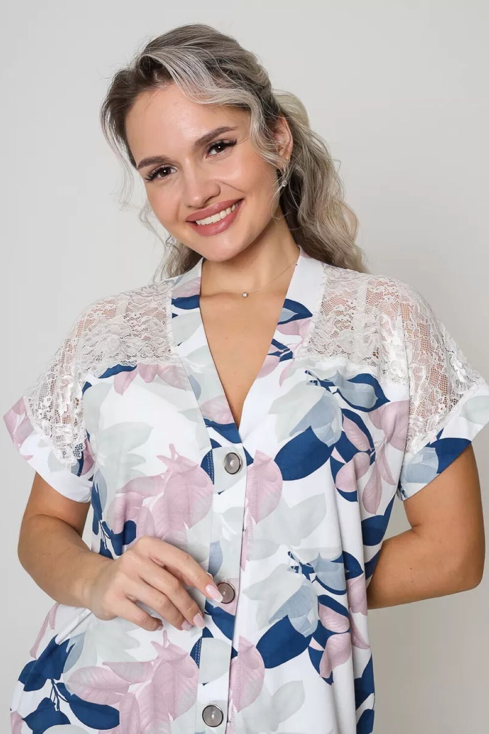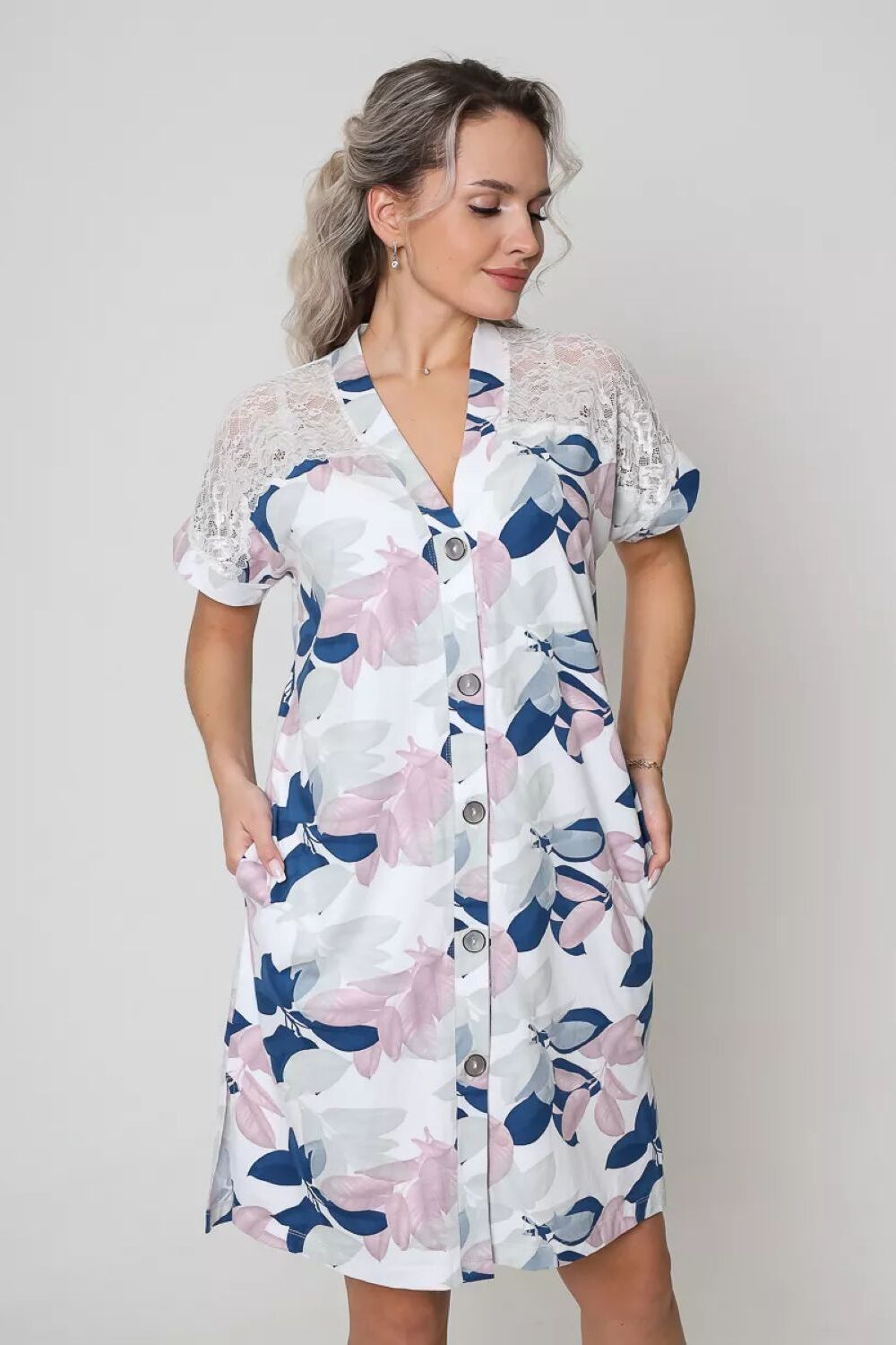 Представляем Вам стильный и удобный короткий женский халатик, идеально подходящий для домашнего использования. Модель доступна в различных размерах, включая большие, чтобы каждая женщина могла найти свой идеальный вариант. Изготовленный из высококачественного нежного хлопка, длинною чуть выше колена. Халат прямого силуэта с карманами в боковых швах и застежкой на пуговицы. Спущенное плечо изделия декорирована эффектным эластичным кружевом. Нарядный, удобный в носке трикотажный халатик также идеально подойдет для беременных женщин, обеспечивая комфорт и свободу движений. Халат имеет короткий рукав и удобную длину, что делает его идеальным как для использования дома, так и для посещения роддома. Выберите этот хлопковый халатик и наслаждайтесь комфортом и красотой каждый день. Позвольте себе погрузиться в мир роскоши с этим трикотажным халатом! Стильная, качественная и комфортная домашняя женская одежда порадует каждого, как практичный подарок. Цвет: белый; Материал: хлопок стрейч;хлопок стрейч; Состав: 95% Хлопок, 5% Лайкра.