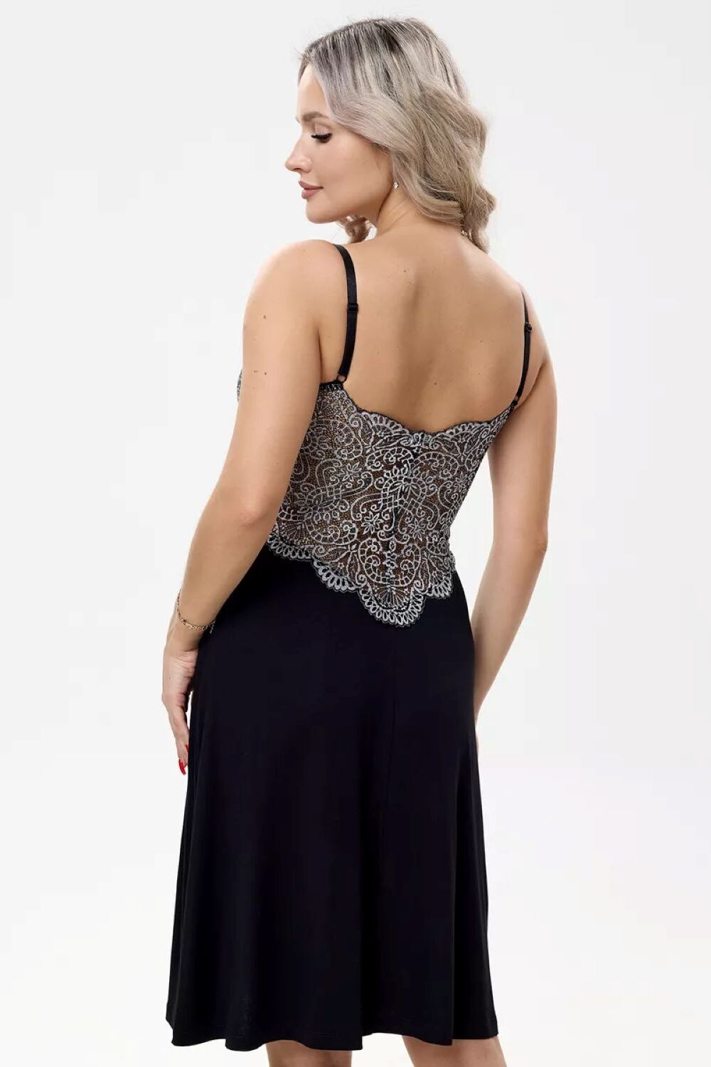 В поисках идеального подарка на весну-лето? Женская ночная сорочка станет отличным выбором для тех, кто ценит сочетание комфорта и элегантности. Эта рубашка короткая, выполнена из вискозной ткани премиум качества, что обеспечивает не только приятные ощущения на теле, но и долговечность. Ее прилегающий силуэт и оптимальная длина до колена подчеркивают фигуру, делая образ сексуально привлекательным. Тонкие регулируемые лямки позволяют идеально подогнать сорочку под любой тип фигуры, что делает ее подходящей на большие размеры и для беременных. Лиф и верхняя часть спинки украшены ажурным кружевом, создавая эффектное декольте. В то же время, на груди кружево пришито на ткань, исключая просвечивание, что добавляет изделию тонкости и изысканности. Женская рубашка является хорошим выбором для комфортного и стильного сна, сочетая в себе все, что необходимо для красоты и удобства. Подарите себе или близким непревзойденное удобство и стиль этого сезона с нашей женской ночной сорочкой. Идеально подойдет для вечерних моментов релаксации и утреннего начал нового дня. Цвет: черный; Материал: вискоза;вискоза; Состав: 92% вискоза, 8% эластан.