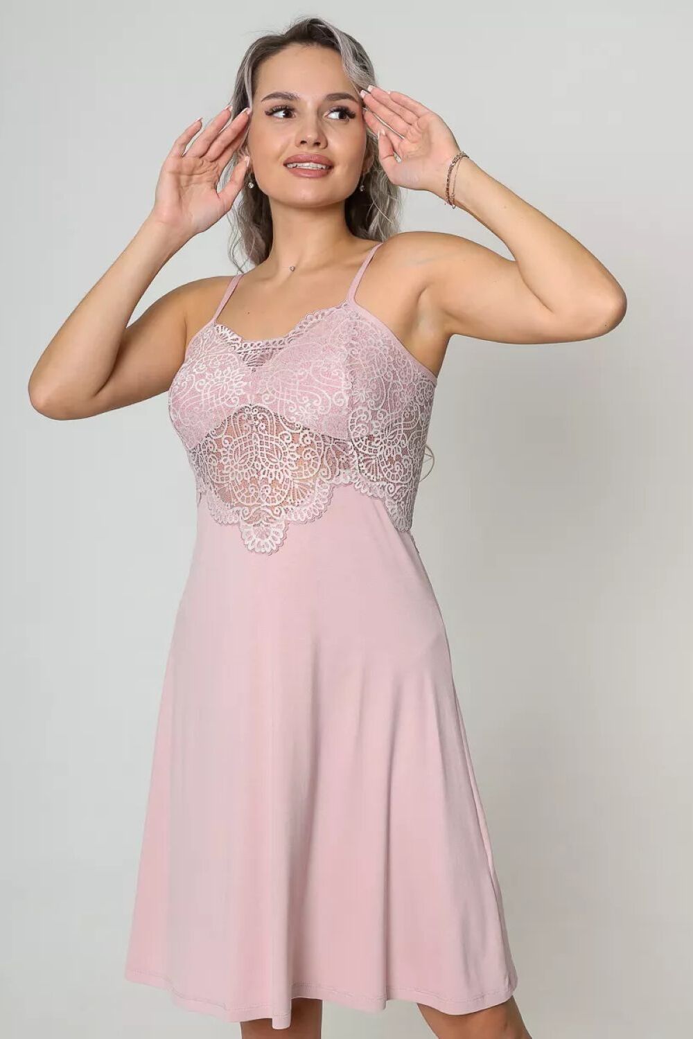 В поисках идеального подарка на весну-лето? Женская ночная сорочка станет отличным выбором для тех, кто ценит сочетание комфорта и элегантности. Эта рубашка короткая, выполнена из вискозной ткани премиум качества, что обеспечивает не только приятные ощущения на теле, но и долговечность. Ее прилегающий силуэт и оптимальная длина до колена подчеркивают фигуру, делая образ сексуально привлекательным. Тонкие регулируемые лямки позволяют идеально подогнать сорочку под любой тип фигуры, что делает ее подходящей на большие размеры и для беременных. Лиф и верхняя часть спинки украшены ажурным прозрачным кружевом, создавая эффектное декольте. В то же время, на груди кружево пришито на ткань, исключая просвечивание, что добавляет изделию тонкости и изысканности. Женская рубашка является хорошим выбором для комфортного и стильного сна, сочетая в себе все, что необходимо для красоты и удобства. Подарите себе или близким непревзойденное удобство и стиль этого сезона с нашей женской ночной сорочкой. Идеально подойдет для вечерних моментов релаксации и утреннего начал нового дня. Цвет: бежевый; Материал: вискоза;вискоза; Состав: 92%вискоза 8%эластан.