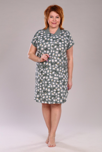 Женский халат выполнен из трикотажного полотна "кулирка-купон". Летний лёгкий халат на молнии, без рукавов, на боковых рельефах переда находятся настрочные карманы, горловина,вход в карманы и проймы обработаны бейкой контрастного цвета.