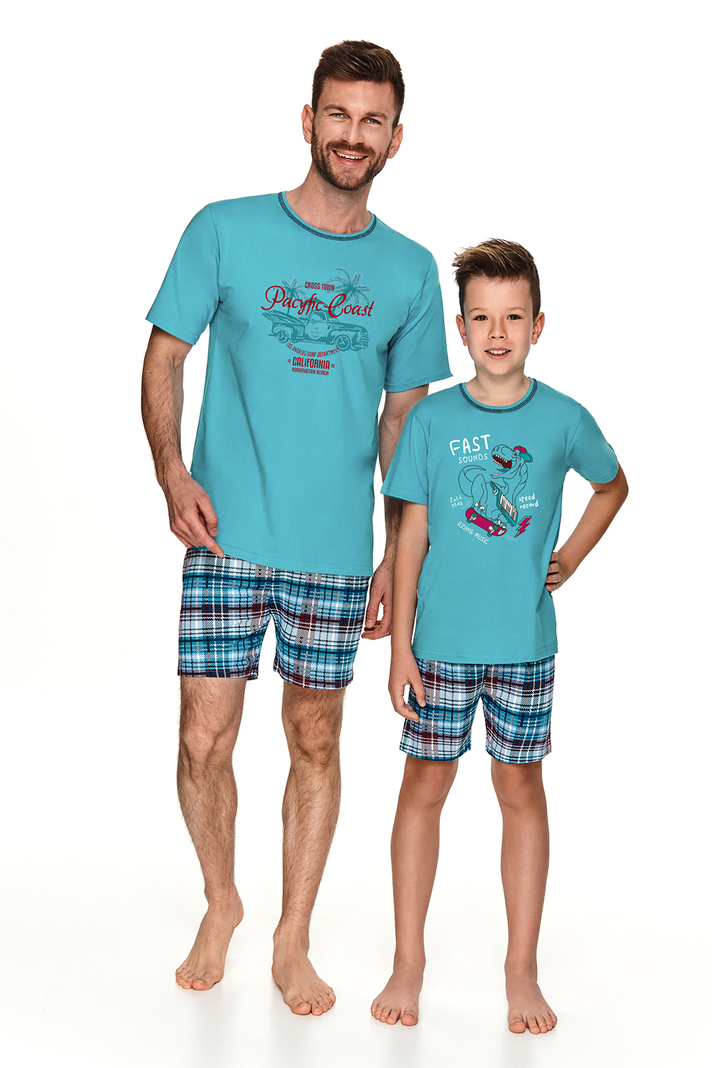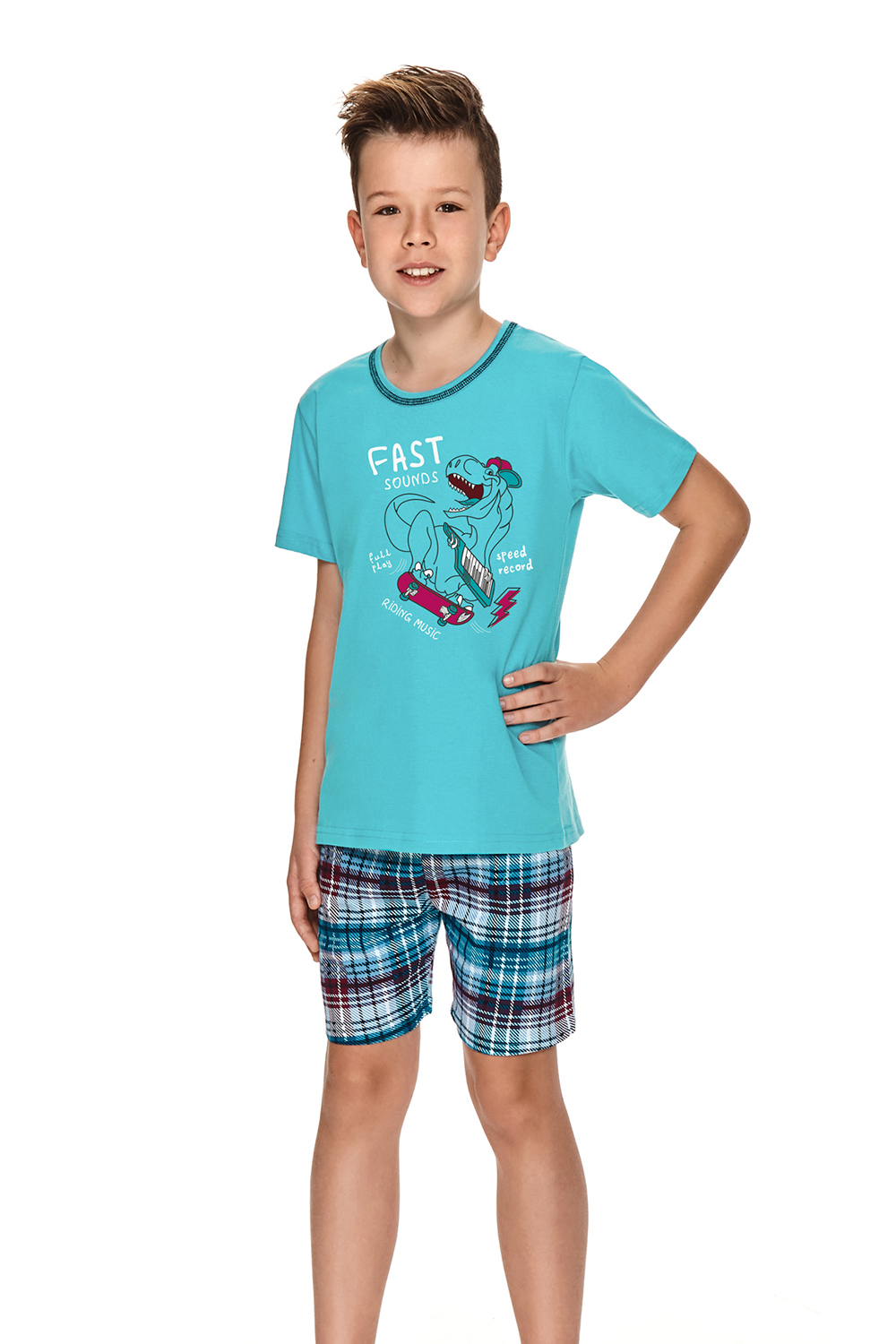 Яркая пижама для мальчиков Ivan состоит из футболки с принтом и клетчатых шорт. Футболка свободного кроя, с круглым вырезом горловины. Шорты на мягкой широкой резинке. Пижама идеально подходит для сна и в качестве домашнего костюма.