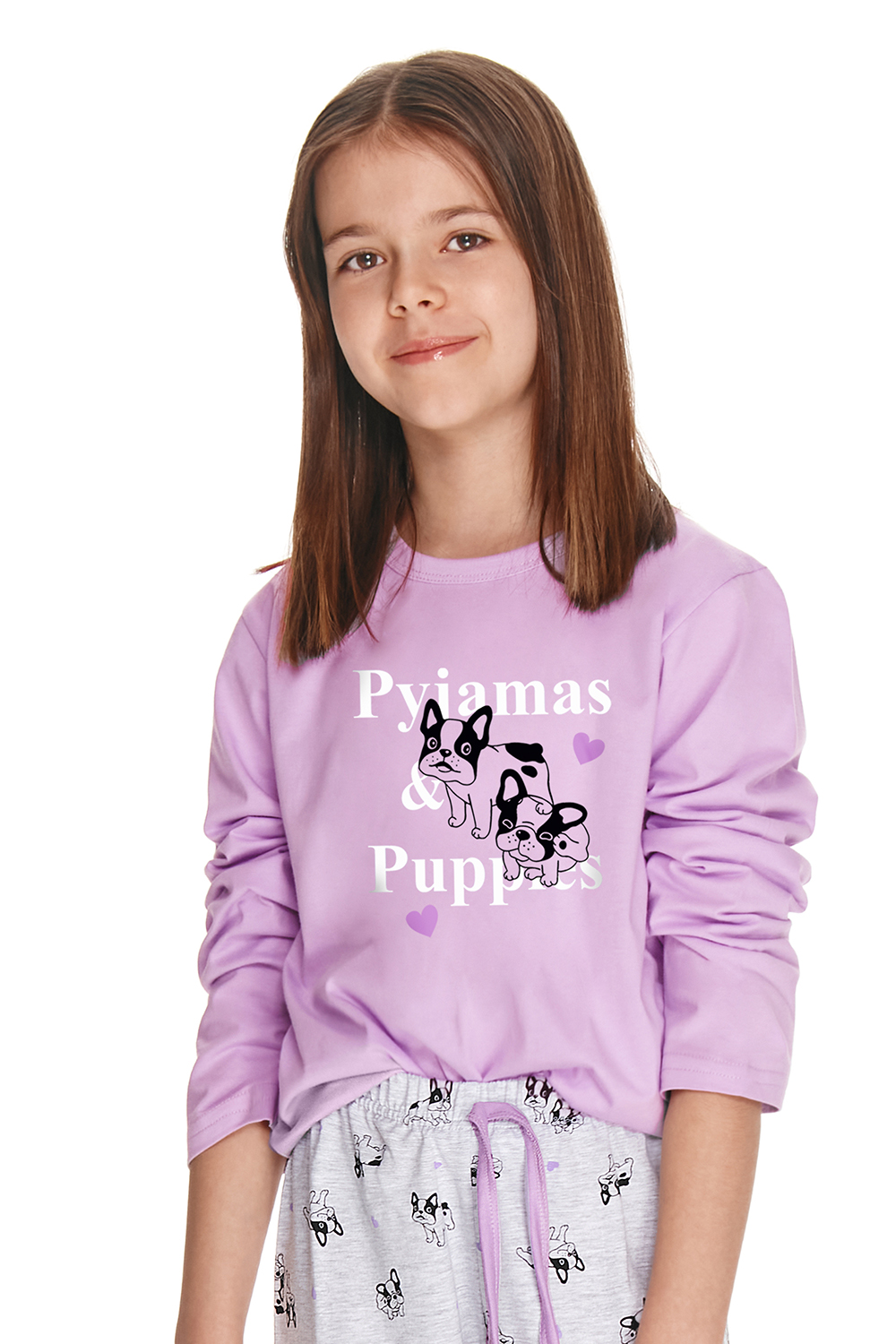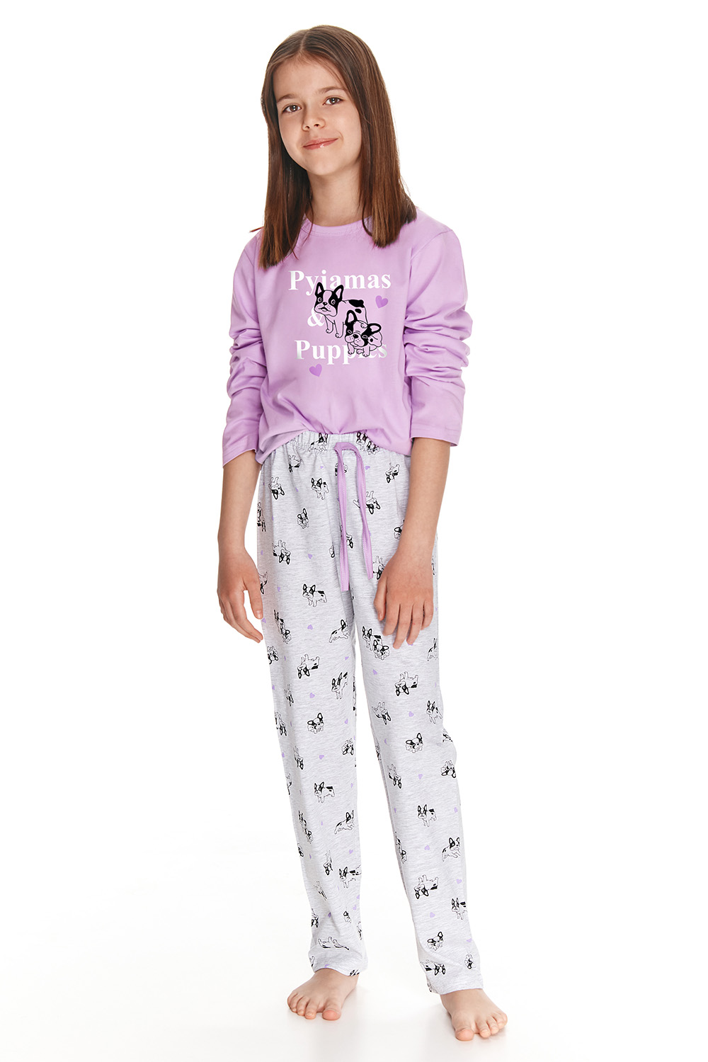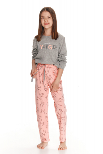 Хлопковая пижама для девочек Ida. Пижама выполненная из качественного и мягкого хлопка, состоит из кофты и брюк. Кофта свободного кроя, с длинными рукавами и круглым вырезом горла, брюки прямые с мягкой резинкой в поясе. Пижама украшена забавным принтом.
