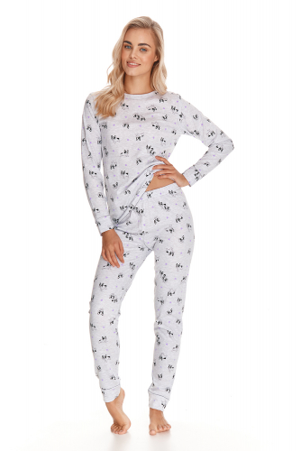 Хлопковая пижама для девочек Suzan. Пижама выполненная из качественного и мягкого хлопка, состоит из кофты и брюк. Кофта свободного кроя, с длинными рукавами и круглым вырезом горла, брюки с мягкой резинкой в поясе внизу на манжетах. Спереди кофта украшена забавным принтом.