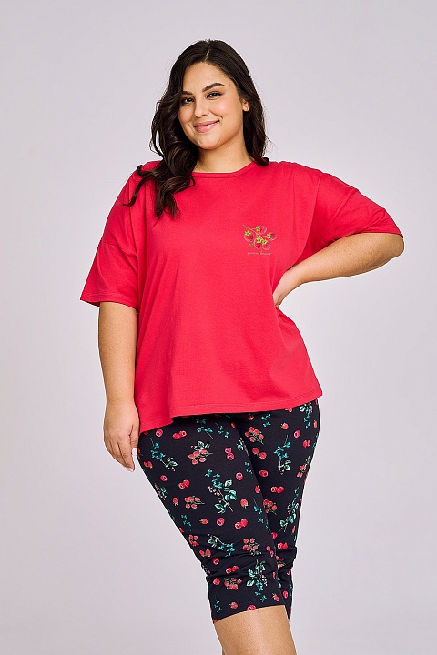 Пижама Dora выполнена из хлопка. Состоит из футболки малинового цвета и принтованных бридж. Пижама очень красивая и комфортная, также будет замечательной домашней одеждой и хорошим подарком для любимого или близкого человека.