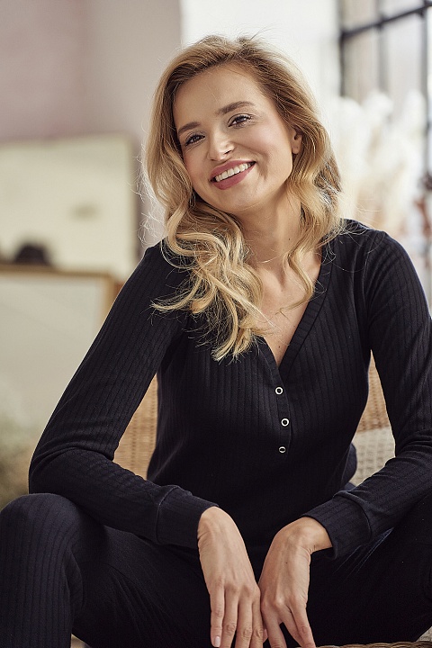 Стильная женская пижама в рубчик Sisi. Кофта с длинным рукавом, на груди планка на кнопках. Пижама очень красивая и комфортная, также будет замечательной домашней одеждой и хорошим подарком для любимого или близкого человека.