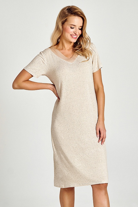 Сорочка Eden бежевого цвета выполнена из вискозы с примесью льна. Сорочка свободного кроя, длина выше колена. Выглядит очень женственно и элегантно.