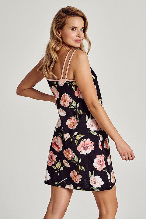 Сорочка из хлопка Margot. Изготовлена из высококачественного хлопка черного цвета с цветочным принтом. Сорочка с V-образным вырезом на бретелях, длина выше колена. Выглядит очень женственно и элегантно.