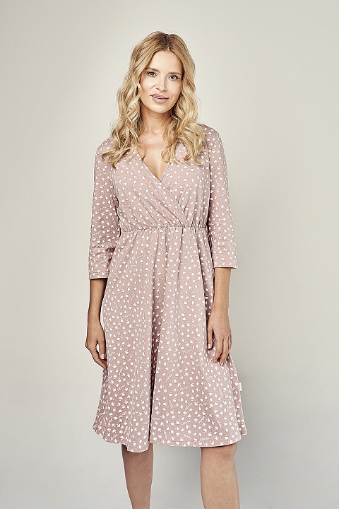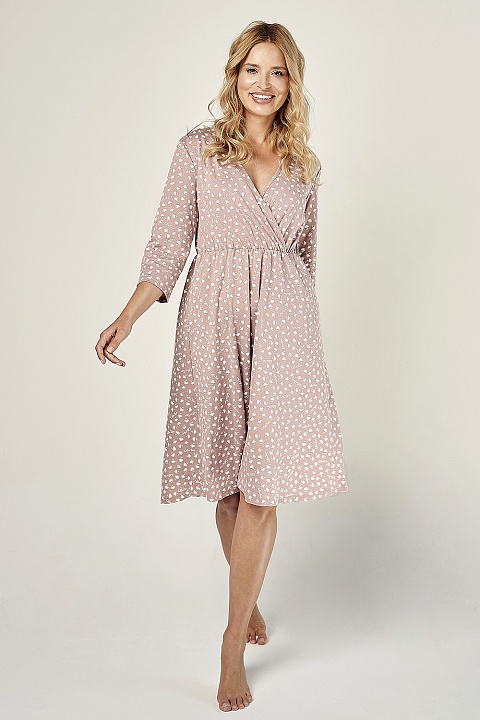 Сорочка для беременных и кормящих мам. Изготовлена из высококачественного хлопка цвета кофе латте с милым принтом. Сорочка с рукавами 3/4 и длиной до колена.
