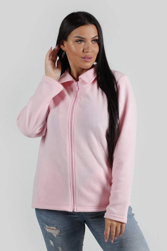 Толстовка женская нежно-розовая на молнии c воротничком. Состав: флис (Турция) 100% ПЭ.