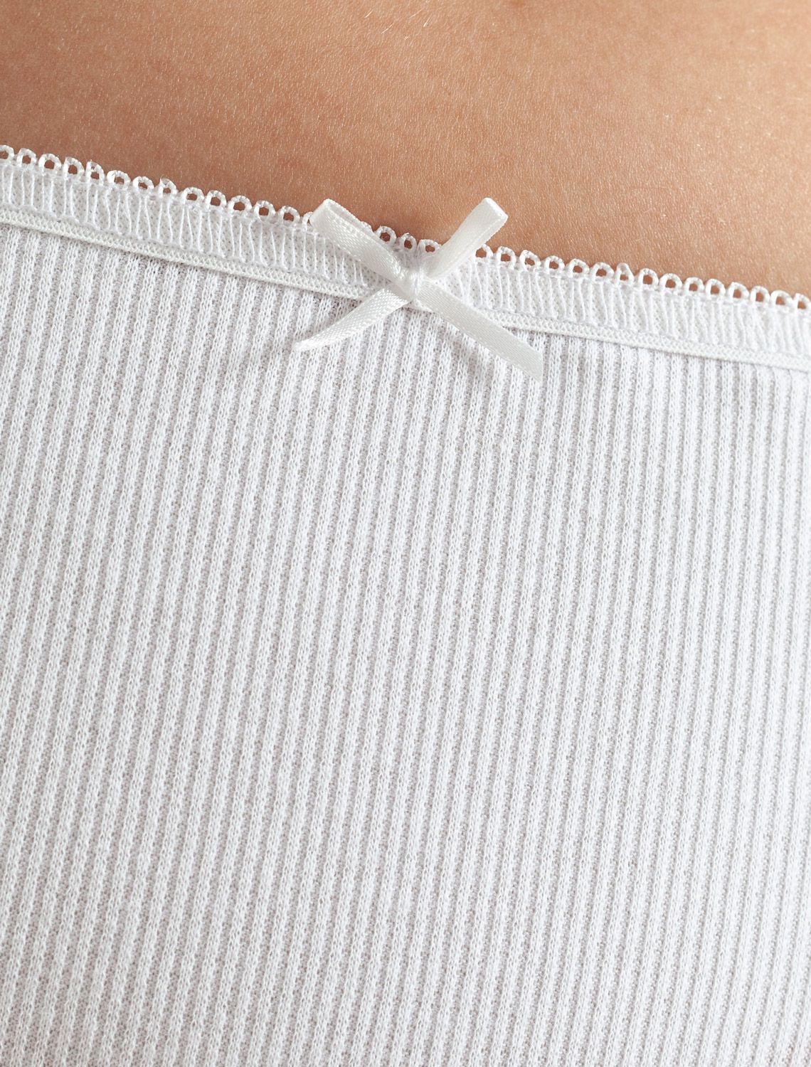Мягкие и удобные трусы слипы белого цвета средней посадки выполнены из эластичного фактурного трикотажа в рубчик. Особенность полотна - трикотаж кашкорсе удивительной мягкости, намного мягче стандартных вариантов, Хлопок обеспечивает максимальный комфорт даже в течение длительного времени и позволяет коже дышать, а эластан в составе позволяет ткани подстраиваться под особенности фигуры. Отделка эластичной ажурной тесьмой добавляет изделию изящности и женственности, делая модель не только практичной, но и привлекательной.Такие слипы идеально подходят для ежедневного использования благодаря своей нежности и комфортной посадке, что особенно важно для чувствительной кожи. Эластичные свойства ткани поддерживают форму после стирок, сохраняя первозданный внешний вид изделия. Этот вариант белья сочетает функциональность и стиль, что делает его отличным выбором для тех, кто ценит качество и комфорт каждый день.