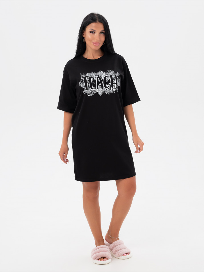Легкая повседневная туника  из тонкой трикотажной ткани. Комфортная и стильная домашняя одежда, в которой удобно заниматься повседневными делами, сохраняя женственность и очарование. Ткань дышащая и приятная к телу. Рисунок выполнен по современной технологии - не осыпается и не трескается, не чувствуется на ткани и позволяет коже под ним дышать. Свободное домашнее платье с рисунком имеет широкий размерный ряд для полных женщин с пышными аппетитными формами, для беременных и кормящих мам. Туника идеально для отдыха и дачи, возьмите с собой на море или наденьте на пляж, такое платье везде уместно, отличный подарок для мамы, жены, бабушки сестры или подруги на любой праздник и без повода Кулирка/Хлопок 100%