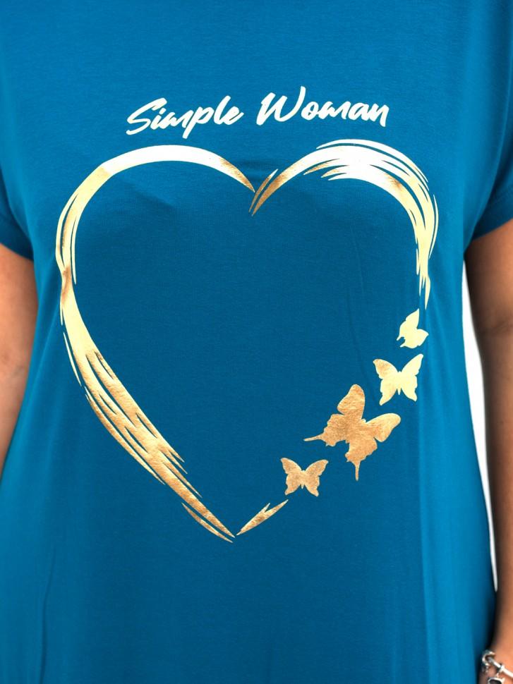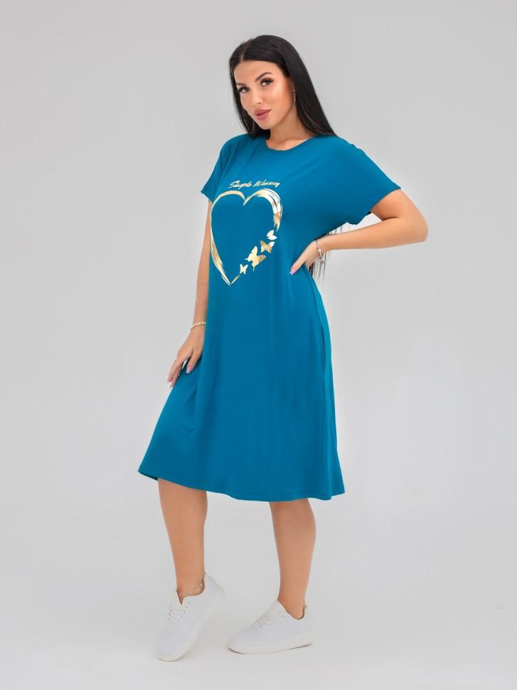 Туника женская свободного кроя с карманами в боковых швах. На полочке печать "Сердце" выполнена методом шелкографии с добавлением золотых частиц. Состав: вискоза однотонная (100% хлопок). Размеры:46,48,50,52,54,56,58,60,62,64