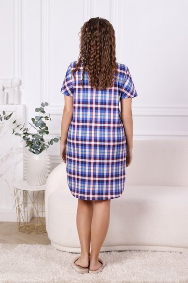 Оптовая продажа. Халат женский из трикотажного полотна кулирная гладь (качество пенье), с набивным рисунком клетка по всему полотну, прямой, укороченный, свободного кроя, с короткими втачными рукавами, стояче-отложным воротником, центральной застежкой на молнию, карманами в боковых швах, фигурной линией низа. Полочка- с притачными кокетками. Рукава, кокетки полочек и воротник выкроены по косой. Полотно нежное, гладкое и приятное на ощупь. Экологически чистый материал не вызывает аллергических реакций. Удобный крой дарит комфорт и ощущение свободы движений.