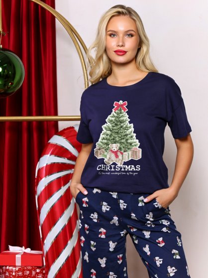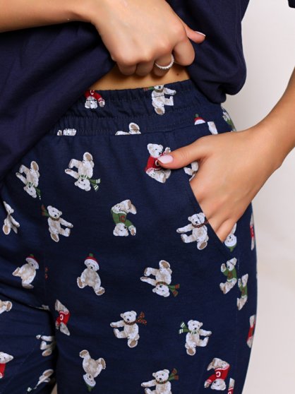 Оптовая продажа. Костюм женский из трикотажного полотна "кулирка" в комбинации двух видов: гладкокрашеного и набивного с тематическим рисунком, состоящий из футболки и брюк. Футболка из гладкокрашеного полотна, классического покроя, с коротким втачными рукавами, горловиной овальной формы, обработанной втачной планкой и отделочной строчкой. В центре переда - принт, выполненгный в технике шелкографии. Брюки из полотна с набивным рисунком длинные, прямые, на притачном поясе с эластичной тесьмой внутри и карманами в боковыых швах.