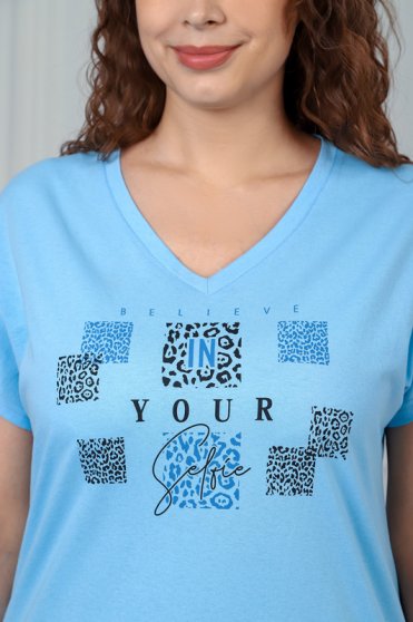 Оптовая продажа. Комплект молодежный из трикотажного полотна кулирная гладь в комбинации двух видов в единой цветовой гамме, состоящий из футболки и шорт. Футболка прямая, свободного кроя, с короткими цельнокроеными рукавами, V-образным вырезом горловины, обработанной втачной планкой, принтом- надписью на полочке, выполненным в технике шелкографии. Шорты прямые, свободного кроя, удлиненные, с карманами в боковых швах, на притачном поясе с эластичной тесьмой внутри, анималистичным принтом по всему полотну. Удобный свободный крой дарит комфорт и ощущение свободы.