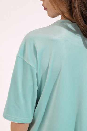 Оптовая продажа. Комплект женский из гладкокрашеного трикотажного полотна “велюр стрейч”, состоящий из футболки и легинсов. Футболка прямая, удлиненная, свободного кроя, с короткими втачными рукавами, спущенной линией плеча, овальной горловиной, обработанной втачной планкой. Легинсы длиной до колен, с эластичной тесьмой по талии. Ткань обладает мягкостью и приятной текстурой, добавляя изделию изящности и роскоши, создает ощущение комфорта и уюта. Обладает хорошими теплоизоляционными свойствами, что делает его отличным выбором для любого времени года.