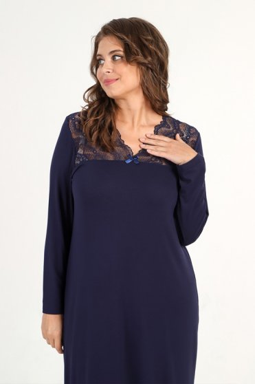 Оптовая продажа. Сорочка женская из гладкокрашеного трикотажного вискозного полотна, прямого силуэта, средней длины, с длинными втачными рукавами и горловиной V-образной формы. Перед с притачной кружевной кокеткой и декоративным бантиком из узкой атласной ленты в центре соединительного шва. Данная модель дарит свободу движения, не перетягивает и не доставляет дискомфорта, создает привлекательный образ в домашней обстановке. Преимуществом данного материала является то, что вискоза не электризуется. Рекомендуется бережная стирка при 30 градусах.