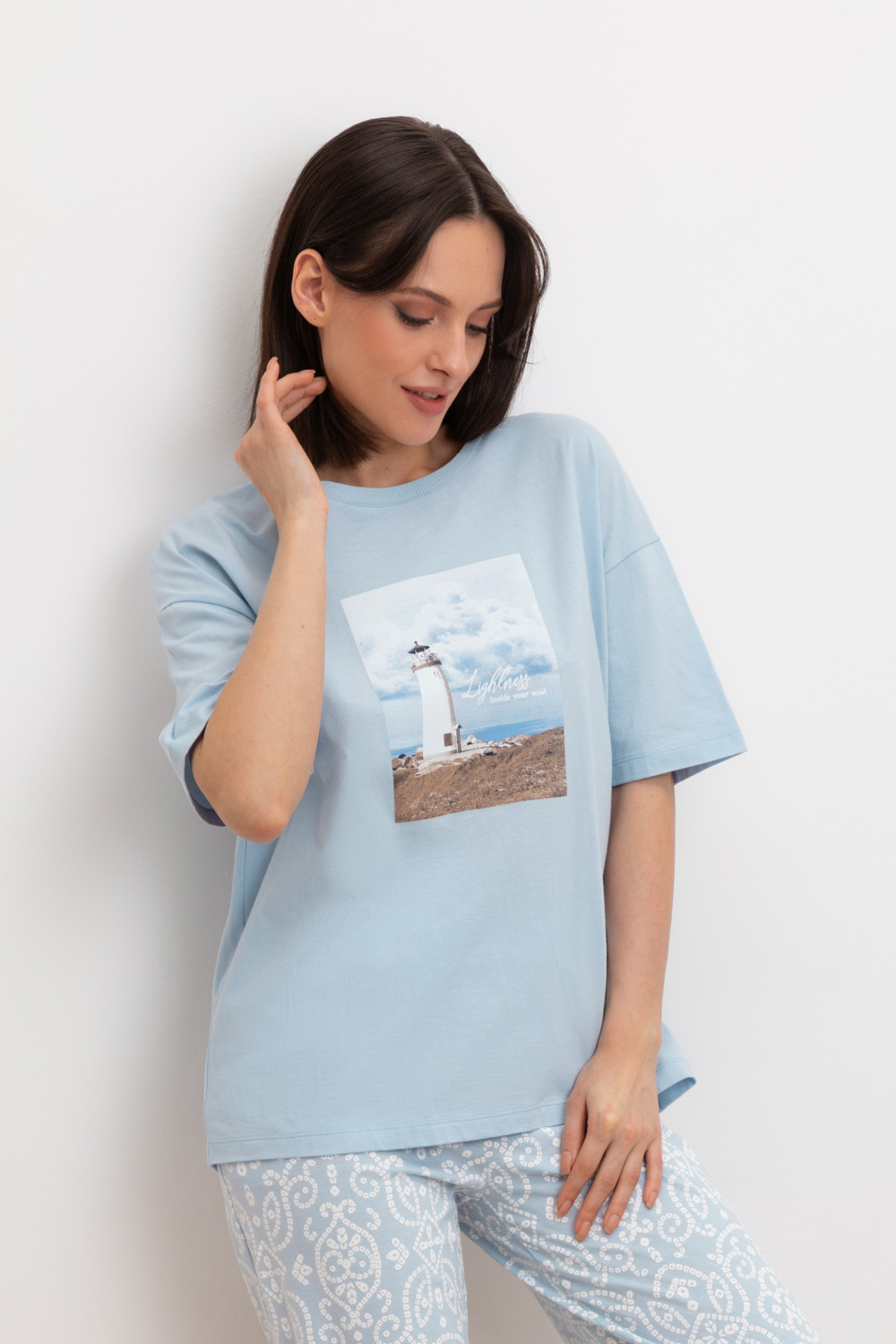 Удлиненная футболка из 100% натурального хлопка. Свободные рукава со спущенной линией плеча создают объём и свободный силуэт. Принт изготовлен из стойких текстильных красителей.