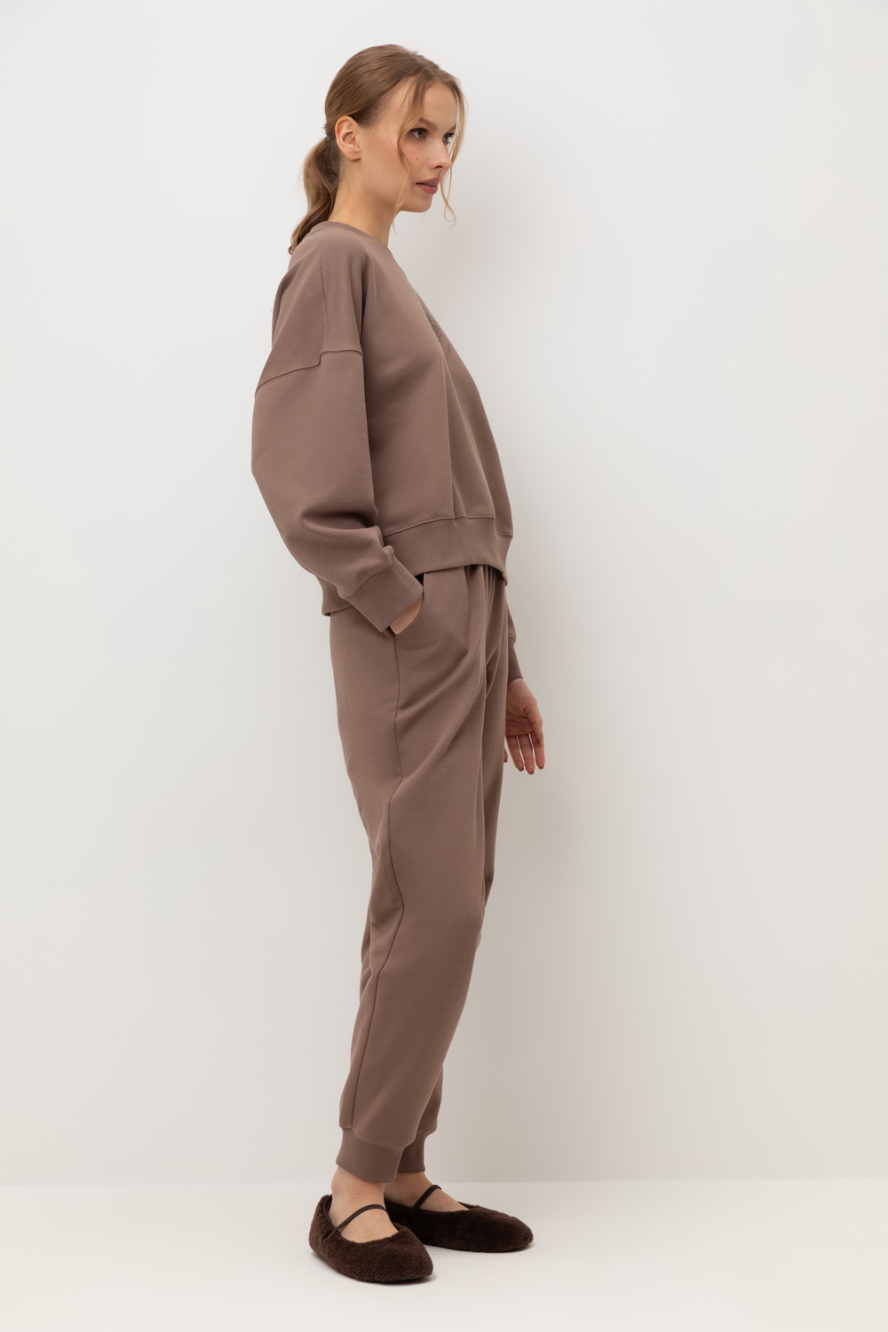 Комплект из 100% петельчатого футера. Мягкий пояс и спортивный силуэт заставят вас влюбиться в его комфорт!