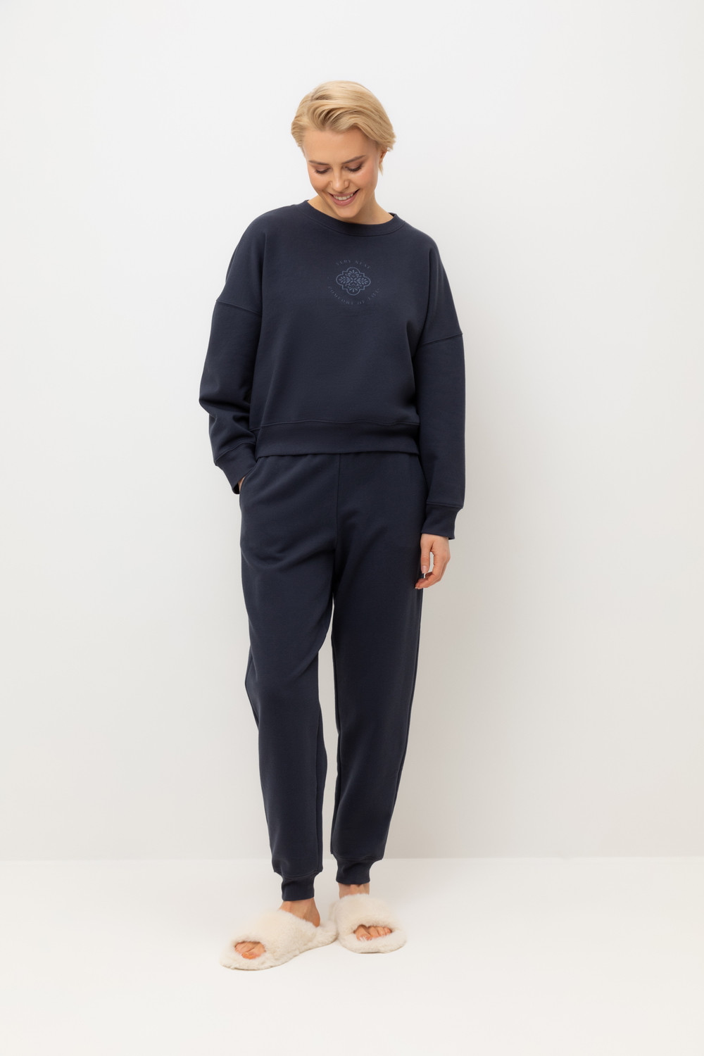 Комплект из 100% петельчатого футера. Мягкий пояс и спортивный силуэт заставят вас влюбиться в его комфорт!