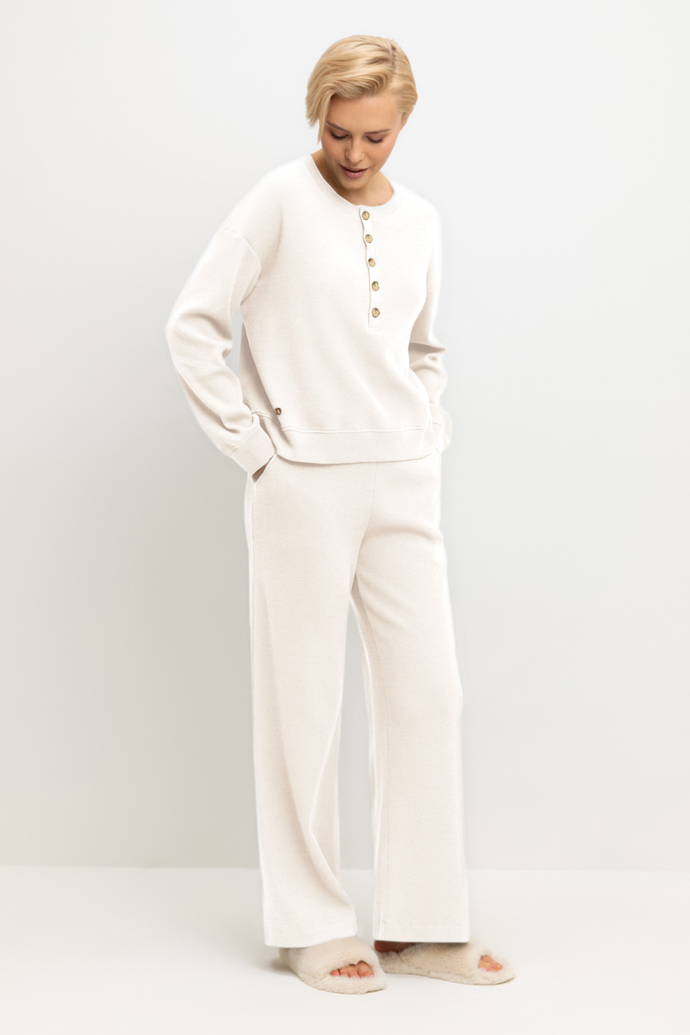 Комплект из объемного трикотажа с добавлением эластичных волокон. Свободный крой обеспечивает легкость и свободу движений.