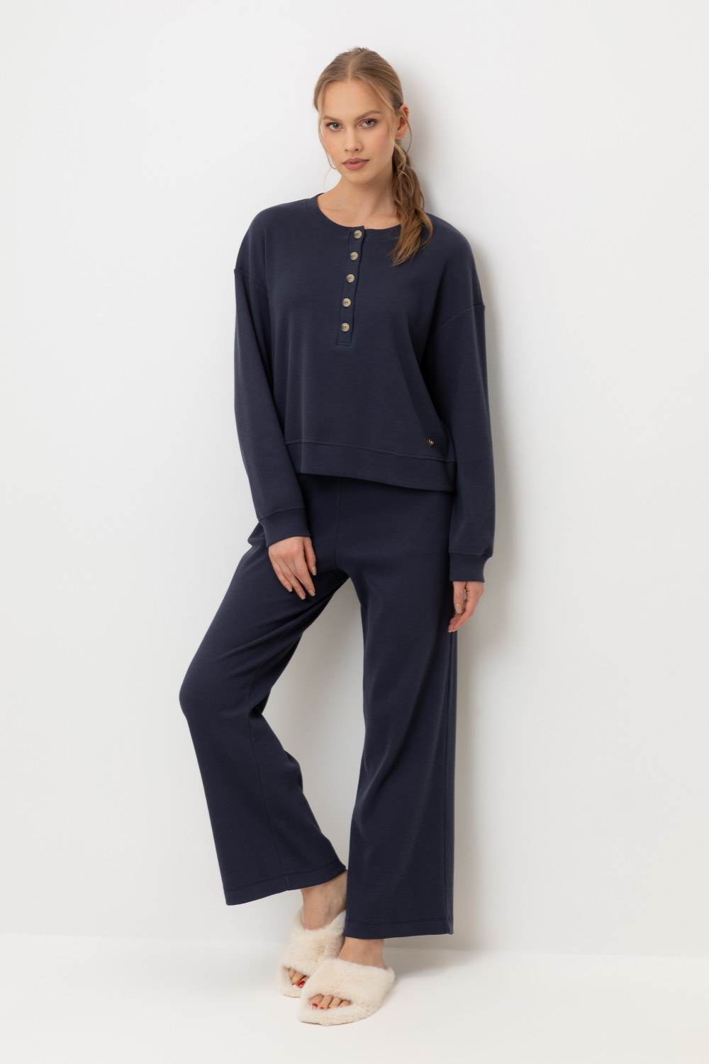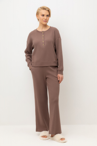Комплект из объемного трикотажа с добавлением эластичных волокон. Свободный крой обеспечивает легкость и свободу движений.
