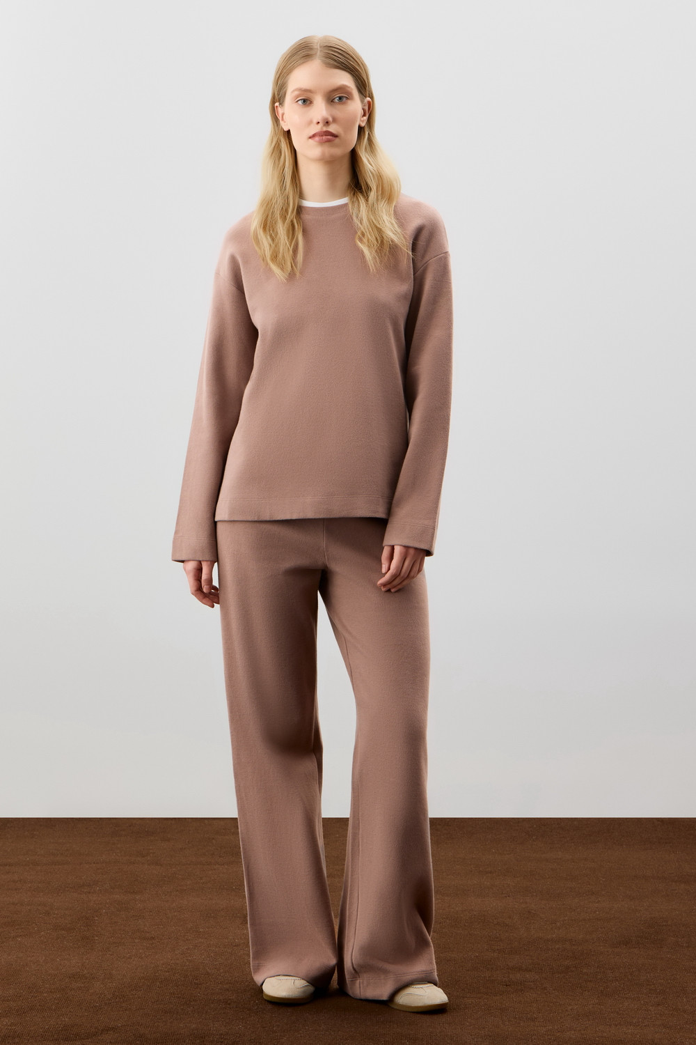 Комплект из 100% хлопка. Специальная обработка полотна пич эффектом придает мягкость, бархатистость и легкий ворс, а брюкии свободный крой обеспечивают легкость и свободу движений.