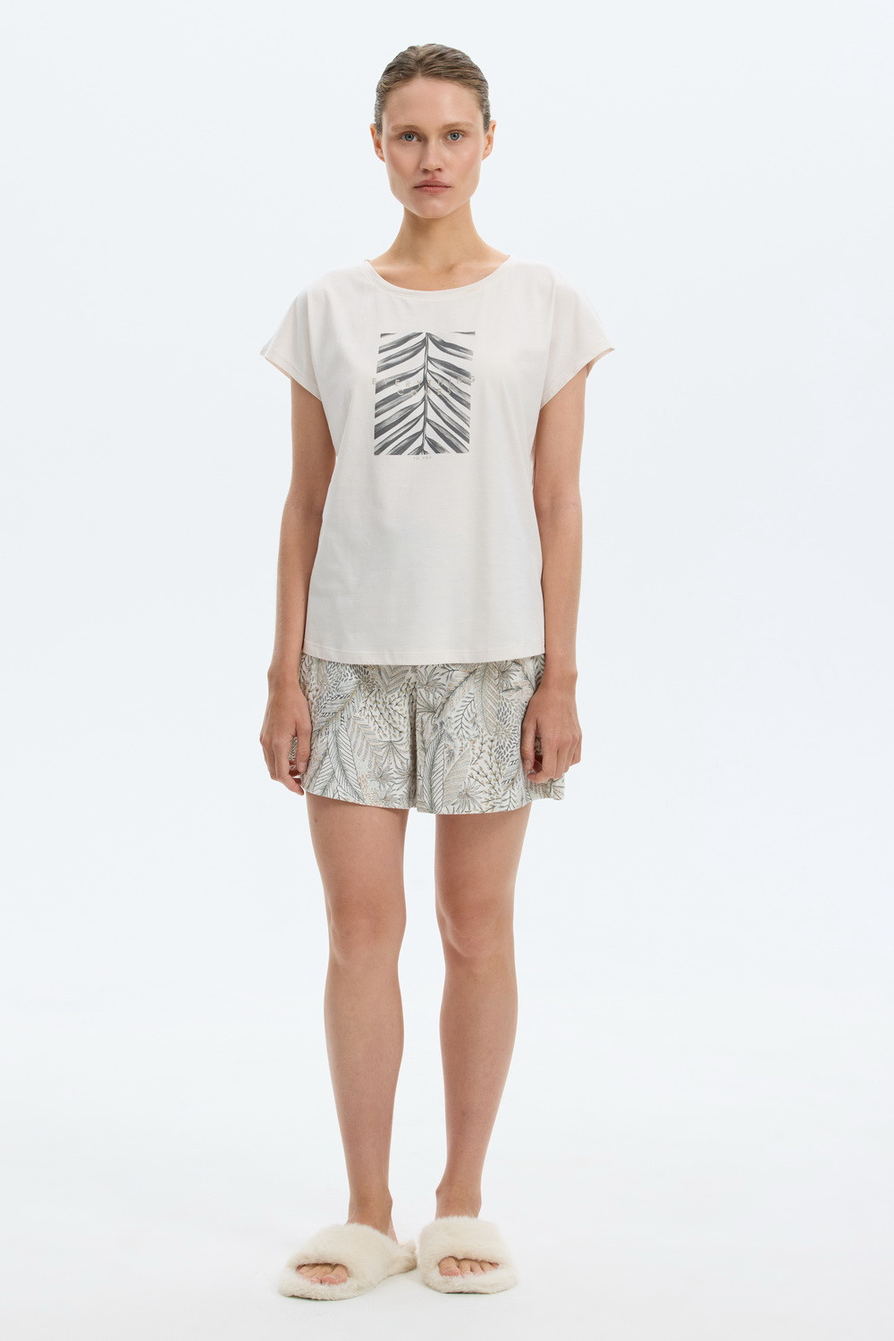 Комплект из высококачественного гребенного хлопка. Футболка имеет фигурный низ и цельнокроеный удобный рукав, а мягкий пояс шорт обеспечивает комфорт во время сна и отдыха.