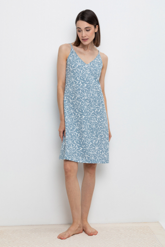 Элегантная сорочка на бретелях для комфортного сна из 100% натурального хлопка с добавление спандекса. На груди декоративные пуговицы. Гладкий материал приятен к телу и позволяет коже дышать.