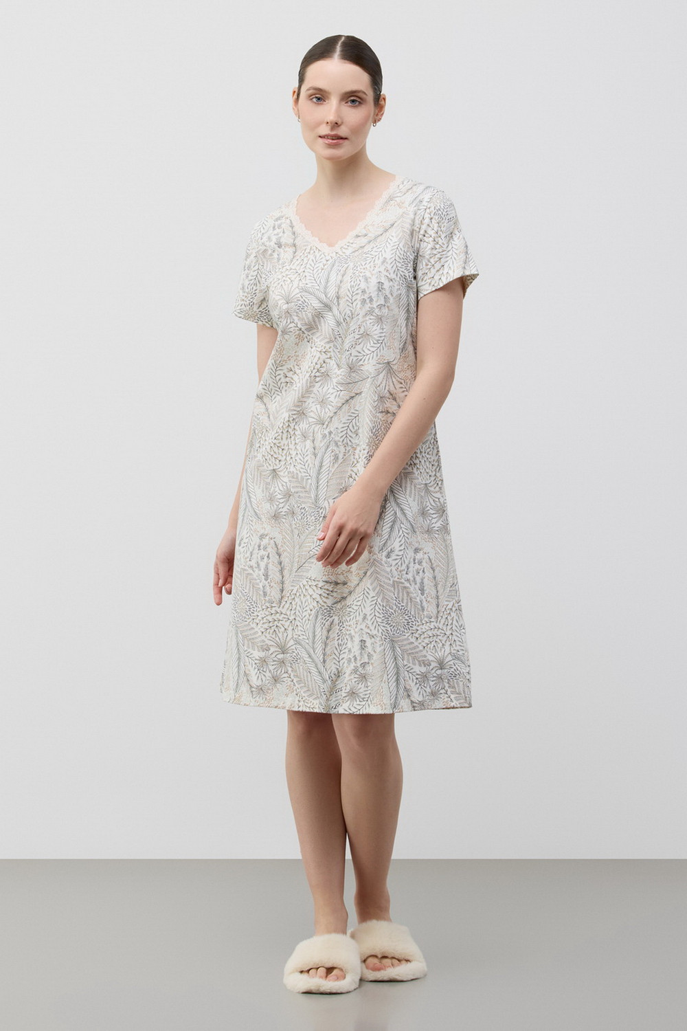 Комфортная сорочка выполнена из высококачественного 100% хлопка. Свободный крой добавляет комфорт для домашнего отдыха