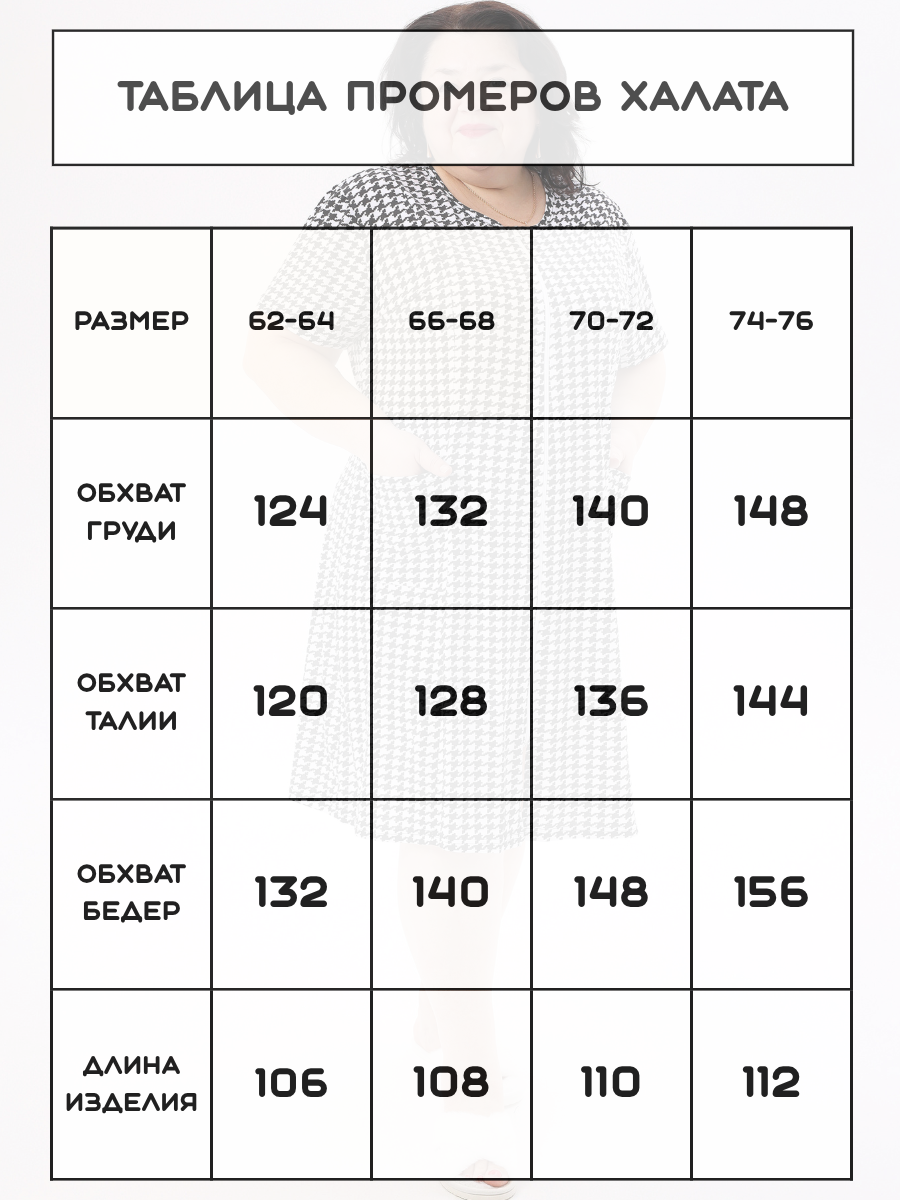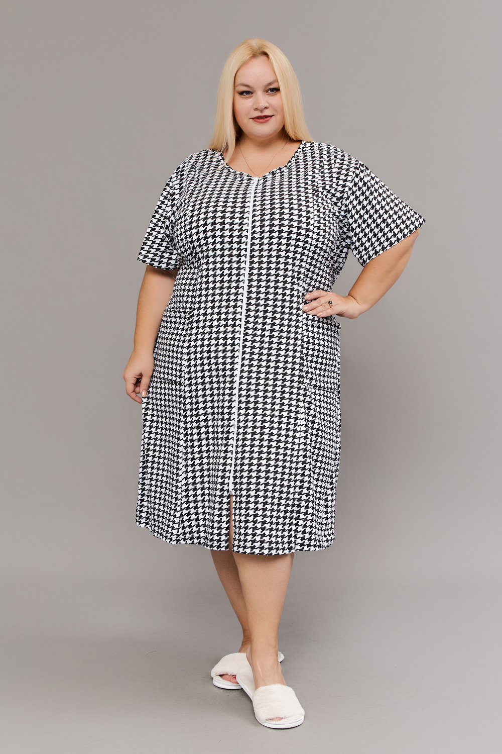 Халат домашний на молнии больших размеров от Вразмере - это идеальное сочетание комфорта и практичности для женщин, ценящих уют и стиль. Этот трикотажный халат, выполненный из 100% ивановского хлопка, отличается невероятной мягкостью и приятной гладкой фактурой. Благодаря натуральному составу, халат дышит и дарит ощущение комфорта в любое время года, особенно в летний зной. Модель с коротким рукавом 3/4 и средней длиной станет незаменимой для дома, обеспечивая свободу движений и удобство. Круглый вырез горловины и накладные карманы в рельефе добавляют халату практичности и стиля. Застежка на молнию позволяет легко надевать и снимать халат, а гусиная лапка придает ему элегантный вид. Доступен в классических цветах: черном и белом. Халат домашний на молнии больших размеров Вразмере- это отличный выбор для женщин, которые ищут удобную и стильную домашнюю одежду. Цвет: ; Материал: кулирка; Состав: 100% хлопок.