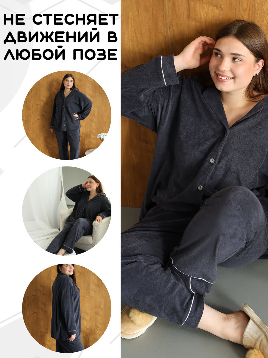 Представляем вам невероятно уютную и теплую пижаму, созданную для комфортного отдыха дома. Эта пижама женская со штанами станет вашим любимым нарядом в прохладные вечера. Мягкая махровая ткань из хлопка с добавлением полиэстера подарит вам приятные тактильные ощущения, а свободный крой позволит чувствовать себя комфортно даже в течение всего дня. Теплая пижама больших размеров идеально подойдет для женщин, которые ценят уют и комфорт. Цвет: графит; Материал: махра;махра; Состав: Махра.