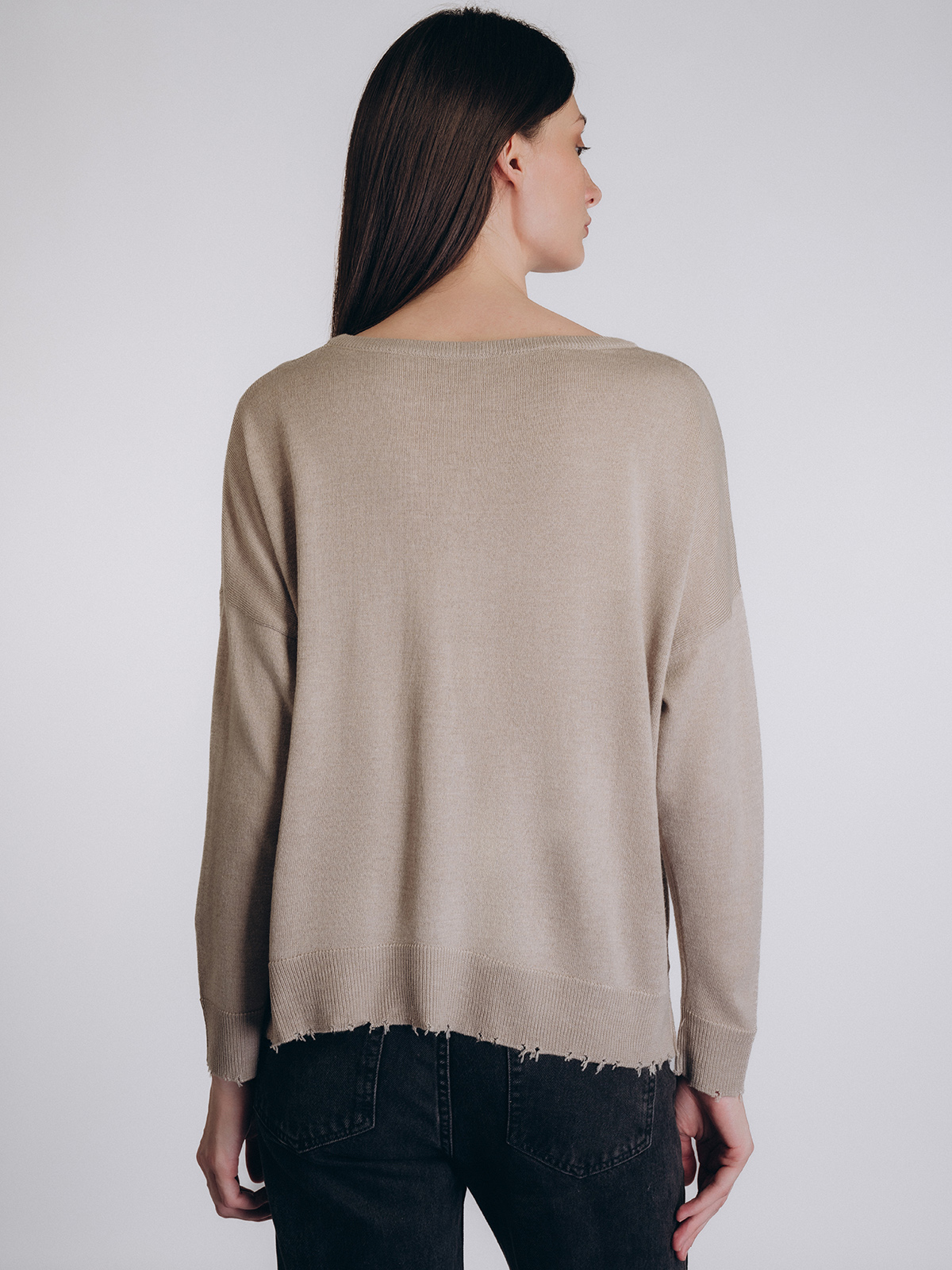 Тонкий пепельный оттенок придаёт образу утончённость и современную лаконичность, делая эту кофту универсальным элементом повседневного гардероба.