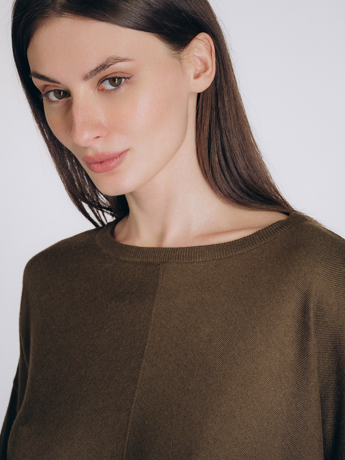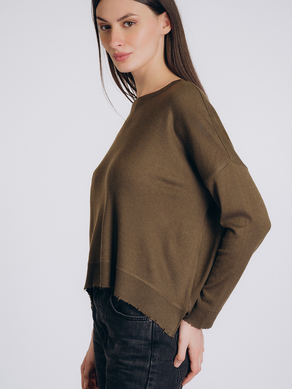 Сдержанный оттенок и лаконичный дизайн придают образу утончённость и современную лаконичность, делая эту кофту универсальным элементом повседневного гардероба.