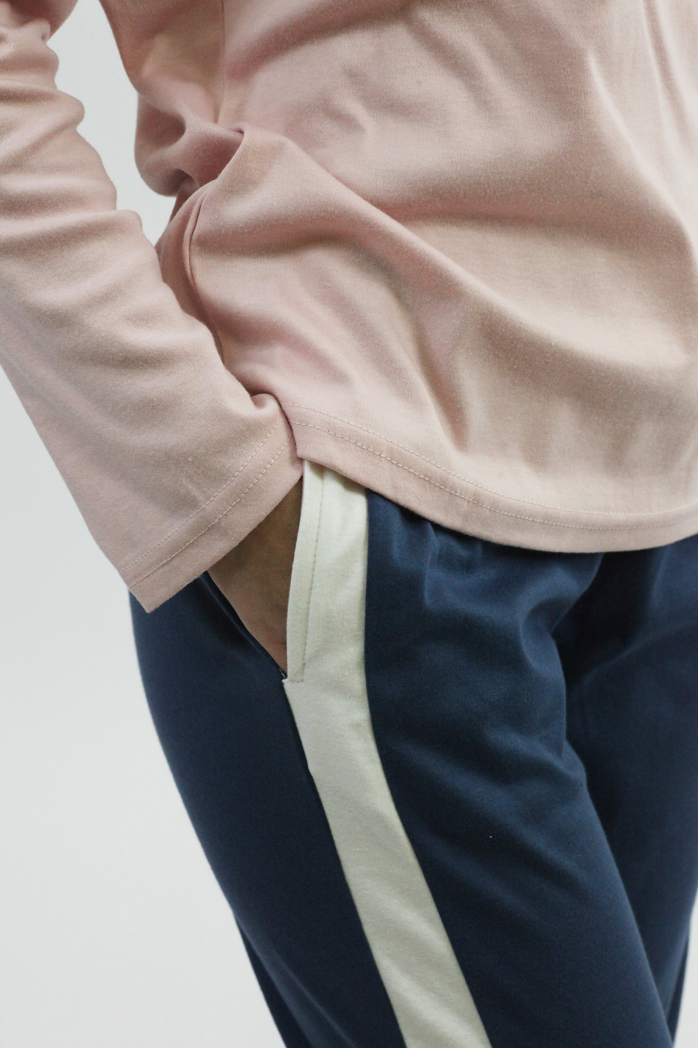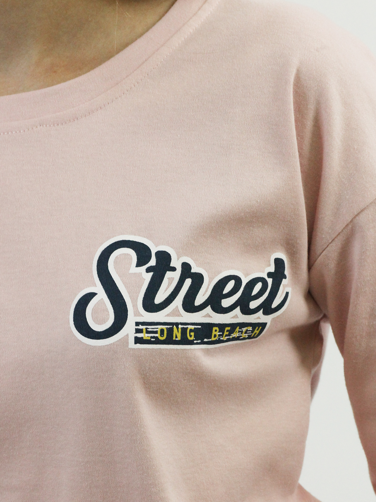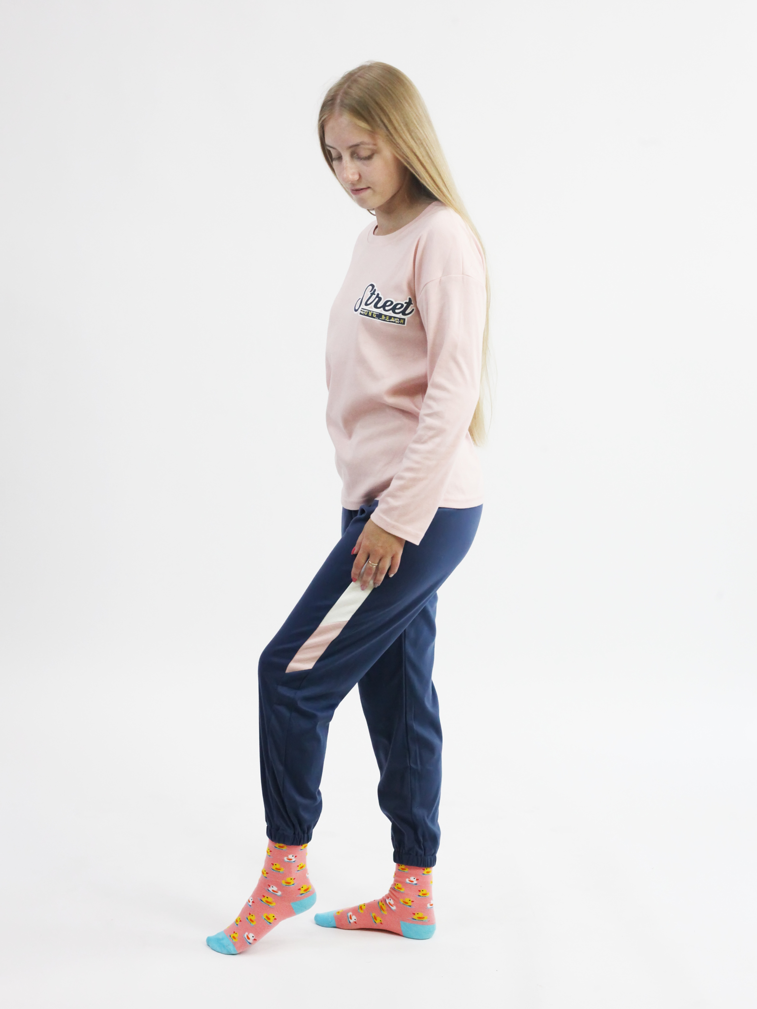 Принт: надпись Street, вставки белого и розового цвета на штанах