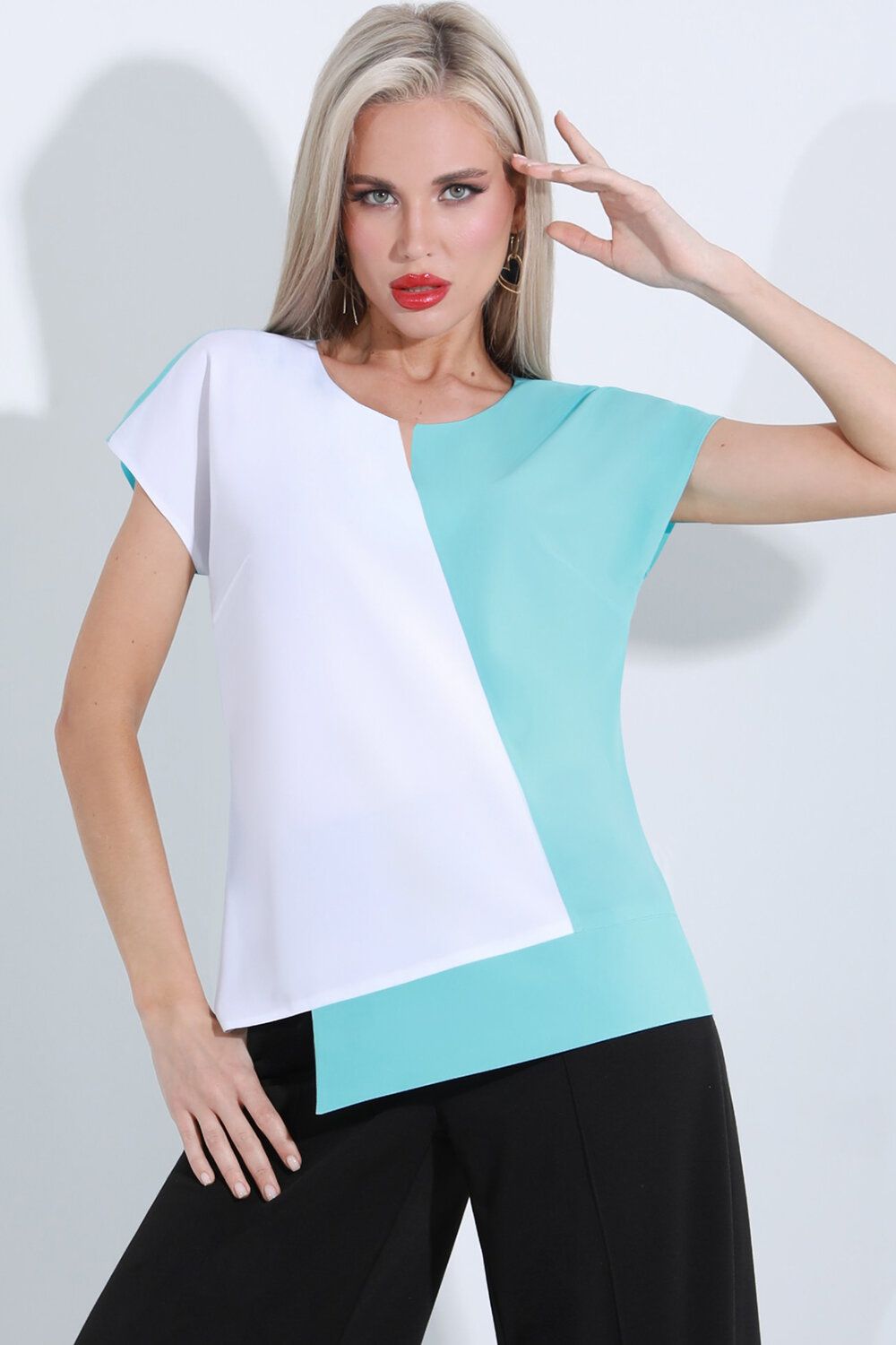 Прямой фасон придает модели легкость, а фигурный вырез горловины смотрится утонченно и визуально удлиняет шею. Асимметричный низ превращает блузку в настоящий хит сезона, ведь такой крой стал одним из трендов зимы-2024 и не намерен сдавать позиции. Роскошная блузка будет идеальным выбором для праздничных мероприятий, вечерних выходов в свет, свиданий и особых дней на работе. Чтобы блузка не деформировалась, рекомендуется стирать ее отдельно от других вещей в деликатном режиме с использованием жидкого моющего средства.