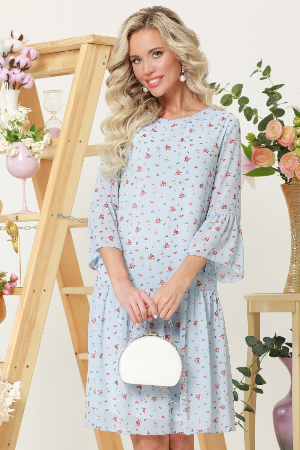 Летящие слои легкого шифона и рюши на рукавах и по подолу задают образу романтический тон. Платье свободное, легкое и воздушное, подходит любой фигуре и любой ситуации, одинаково уместно на улице, в офисе или на вечеринке.