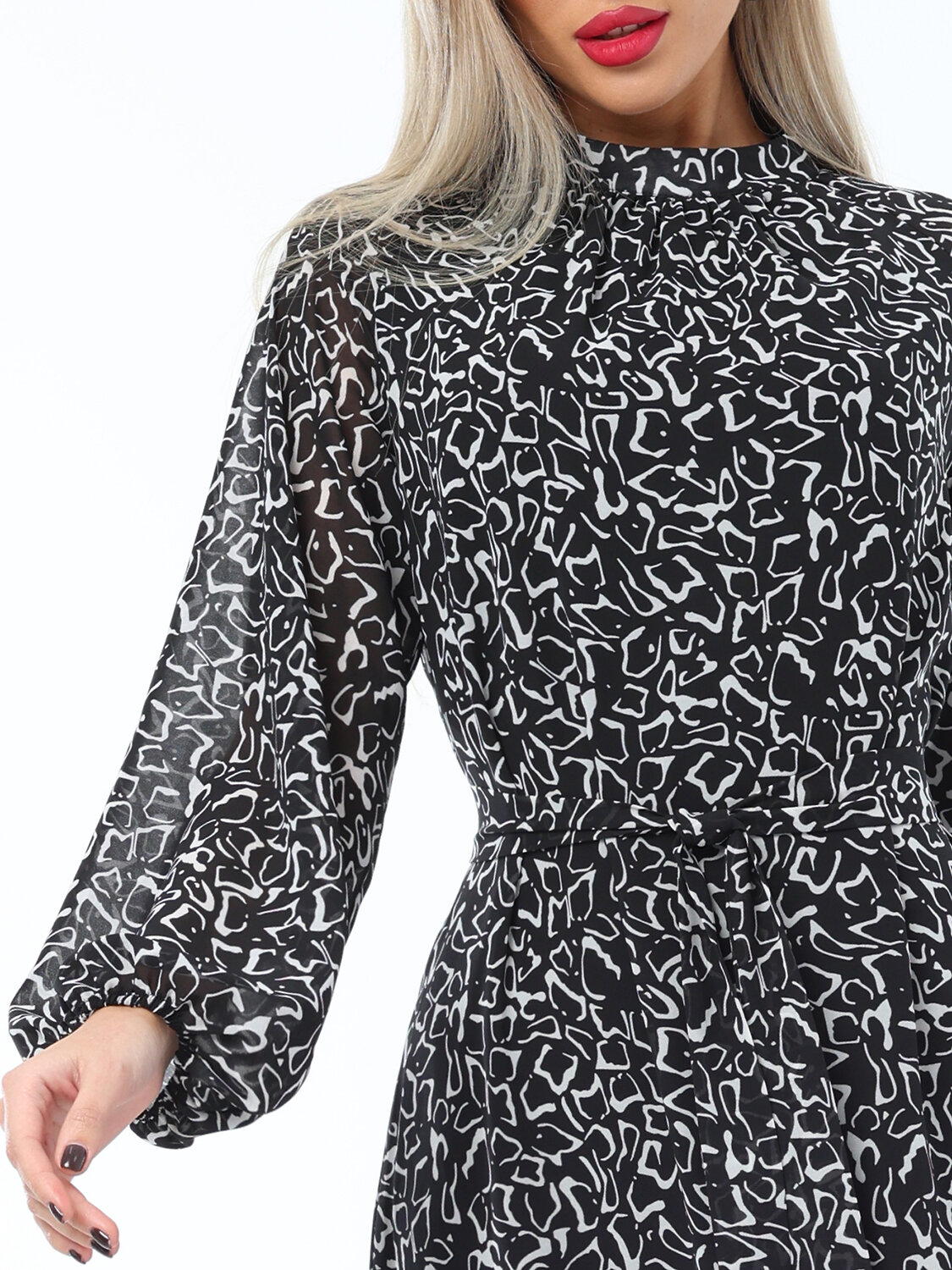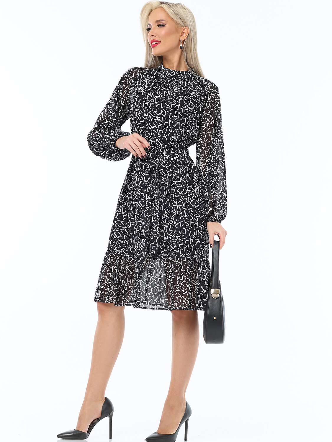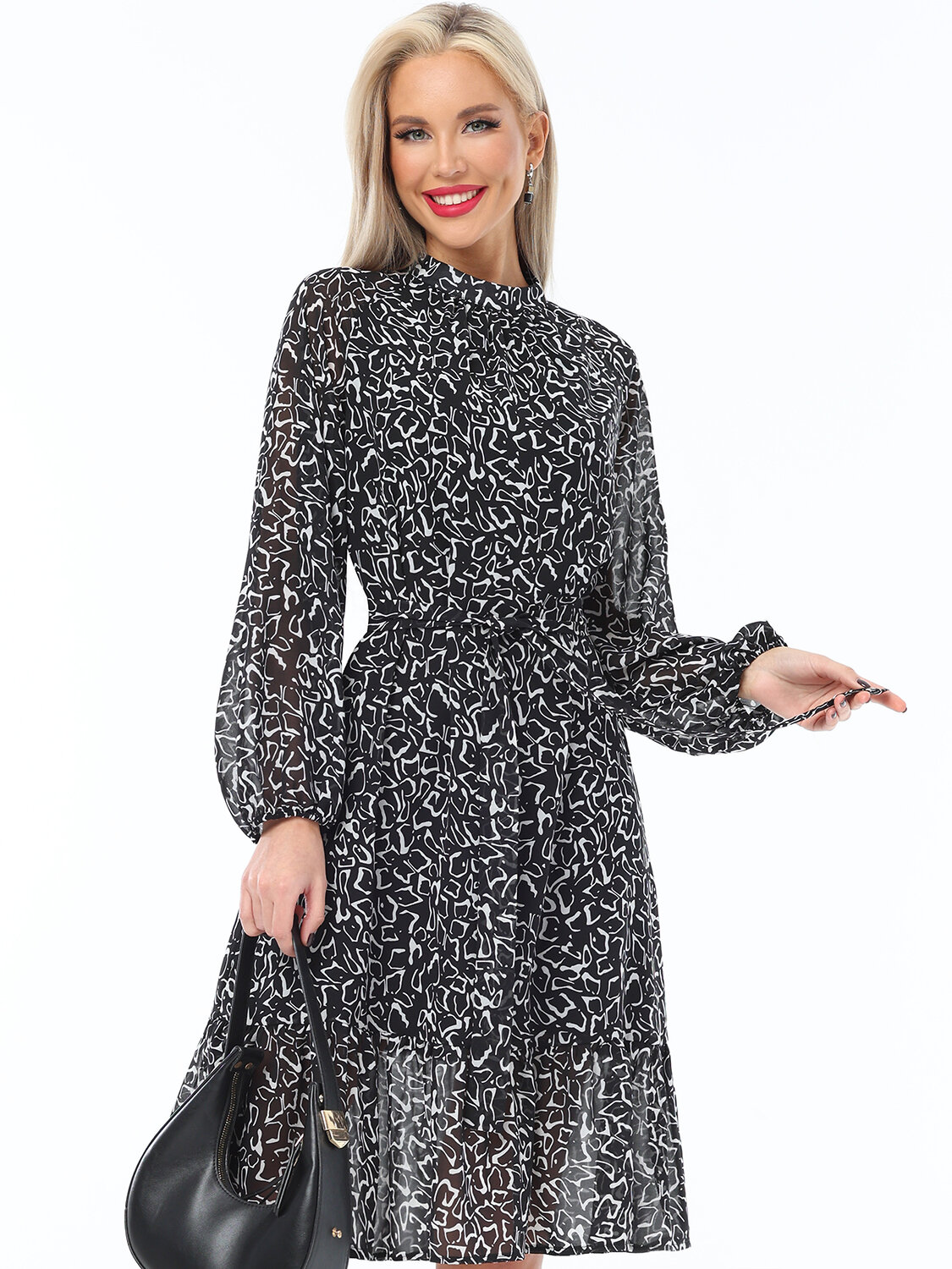 Богемное платье с рукавом реглан и воротничком-стойкой выполнено из шифона с подкладом. За счет свободного силуэта с поясом и воланом по низу юбки платье получает мягкие свободные формы, что выглядит очень романтично. Рукава присобраны на тоненький манжет. Застежка платья на пуговицах. Абсолютно самодостаточная вещь, и в пир, и в мир.