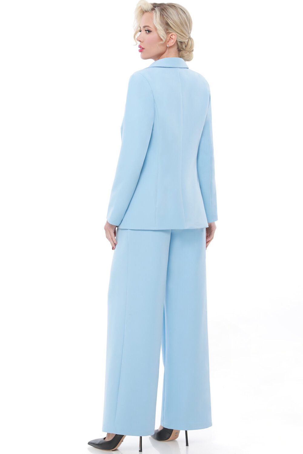 Брючный деловой костюм — элегантная модель на все времена, которая будет роскошно смотреться как на работе, так и на вечернем мероприятии. Жакет прямого кроя с застежкой на пуговицу не только соответствует последним модным тенденциям, но и помогает сгладить нюансы фигуры. Два кармана с клапанами по бокам функциональны и не добавляют лишнего объема. Стильным дополнением к жакету становятся широкие прямые брюки полной длины с высокой посадкой. Модель не сковывает движений, визуально вытягивает силуэт и создает эффект летящей походки. При желании брюки можно дополнить кожаным ремешком, чтобы подчеркнуть талию и стильно завершить образ. Комплект выполнен из качественной приятной к телу костюмной ткани, которая практически не мнется и слегка тянется. Рекомендуется стирать изделие в деликатном режиме при температуре до 30 градусов без отжима.