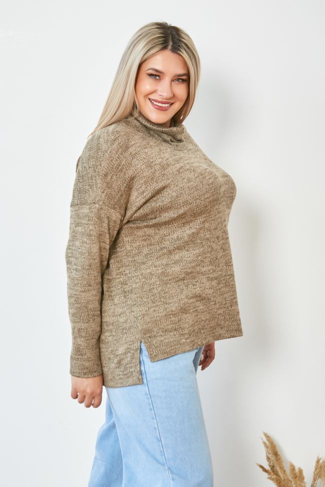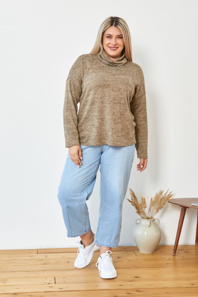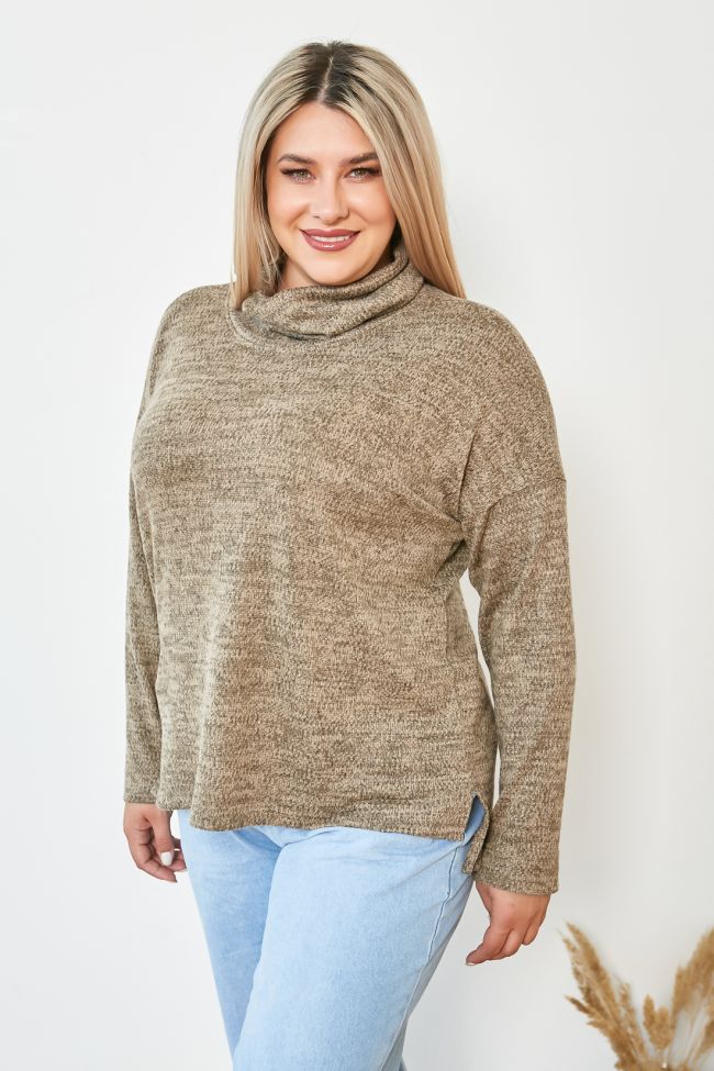 коричневый Комфортный джемпер прямого силуэта, длиной до линии бедер. Модель выполнена из ворсового трикотажного полотна. Круглый вырез горловины оформлен воротником - стойка. Рукава длинные втачные на спущенной линии плеча. Низ разноуровневый, перед короче спинки, по бокам разрезы. Джемпер прекрасно дополнит повседневный гардероб в прохладное время года.