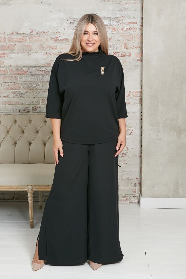 черный Стильный джемпер свободного силуэта длиной до линии бедер. Модель выполнена из однотонного трикотажа "скуба". Круглый вырез горловины оформлен воротником "хомут". Цельнокроеные рукава длиной 3/4. В качестве отделки по переду наклонные карманы с листочкой. Низ изделия дополнен кулиской. Модель можно комбинировать с однотонными брюками или джинсами. Отличный вариант в тренде нынешних дней.