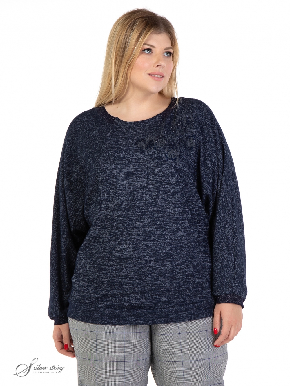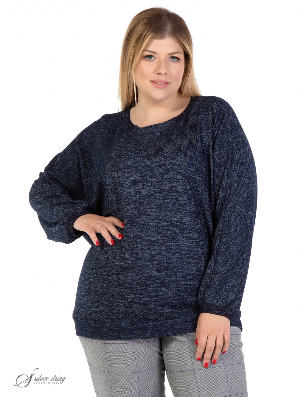 Стильный джемпер Т - образного силуэта выполнен из эластичного трикотажного полотна с меланжевым эффектом. Модель с круглым вырезом горловины и длинным цельнокроеным рукавом. От линии горловины и до низа проходят диагональные рельефы. Трикотажная планка расположена вдоль линии горловины спинки и достигает уровня рельефов на полочке. Низ рукава оформлен трикотажным подвязом. Верхняя часть полочки декорирована термопринтом в цвет полотна. Удобный крой модели скрывает возможные недостатки фигуры, а оригинальный дизайн позволит выглядеть стильно и современно.