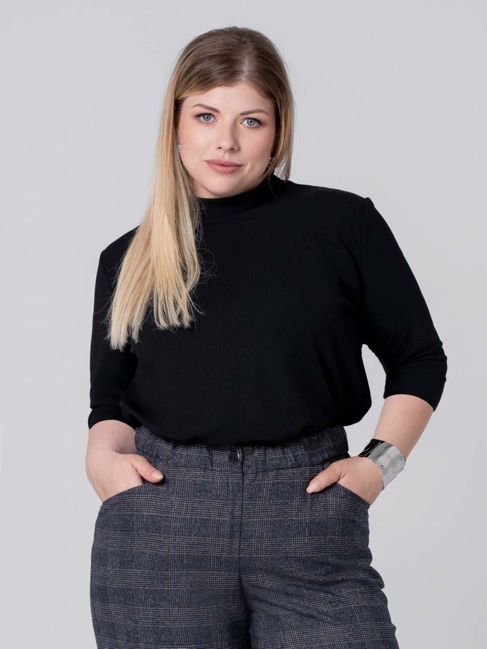 Стильный джемпер прямого силуэта выполнен из пластичного трикотажного полотна с фактурной выработкой - «рубчик». Изделие с воротником - «стойкой» и втачным рукавом длиной 3/4. Модель отлично маскирует проблемные зоны, стройнит фигуру и дарит ощущение свободы и комфорта. Она прекрасно впишется в Ваш гардероб и станет незаменимой при создании разнообразных комплектов.