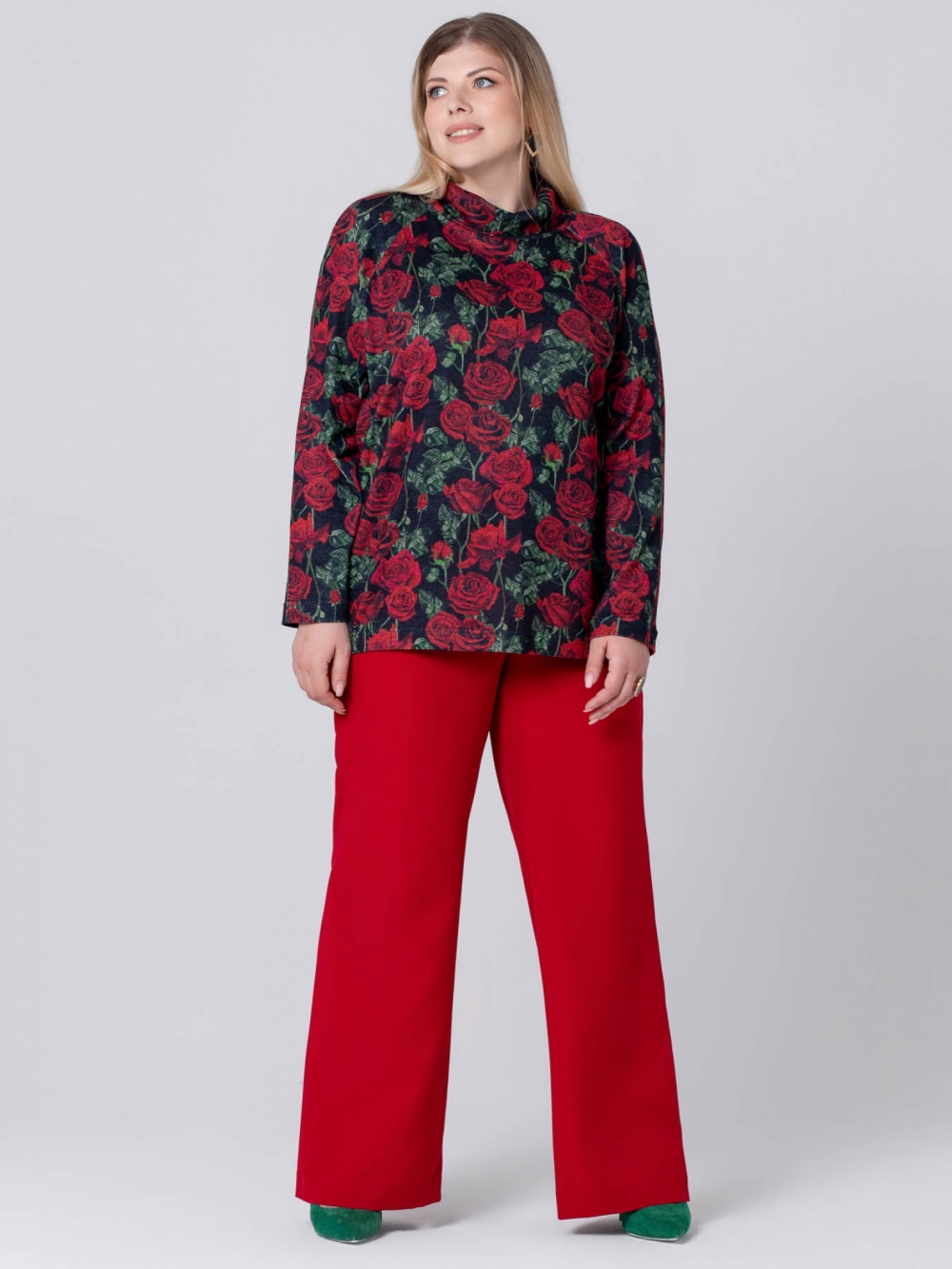Эффектный джемпер прямого силуэта выполнен из мягкого трикотажного полотна с цветочным рисунком, выполненным в технике Digital. Красные цветы какое-то время назад предлагались женщинам в основном в виде принтов на летних вещах. Теперь пора отойти от традиций и порадовать милых дам новыми декоративными решениями. Горловина изделия оформлена мягким воротником стойкой. Рукав длинный, покроя реглан. Этот джемпер - идеальный выбор для тех, кто ценит комфорт и хочет выглядеть оригинально.