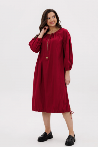 Полуприлегающий силуэт, втачной покрой, круглая горловина, длинный зауженный рукав. По низу справа декоративная сборка.