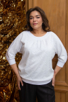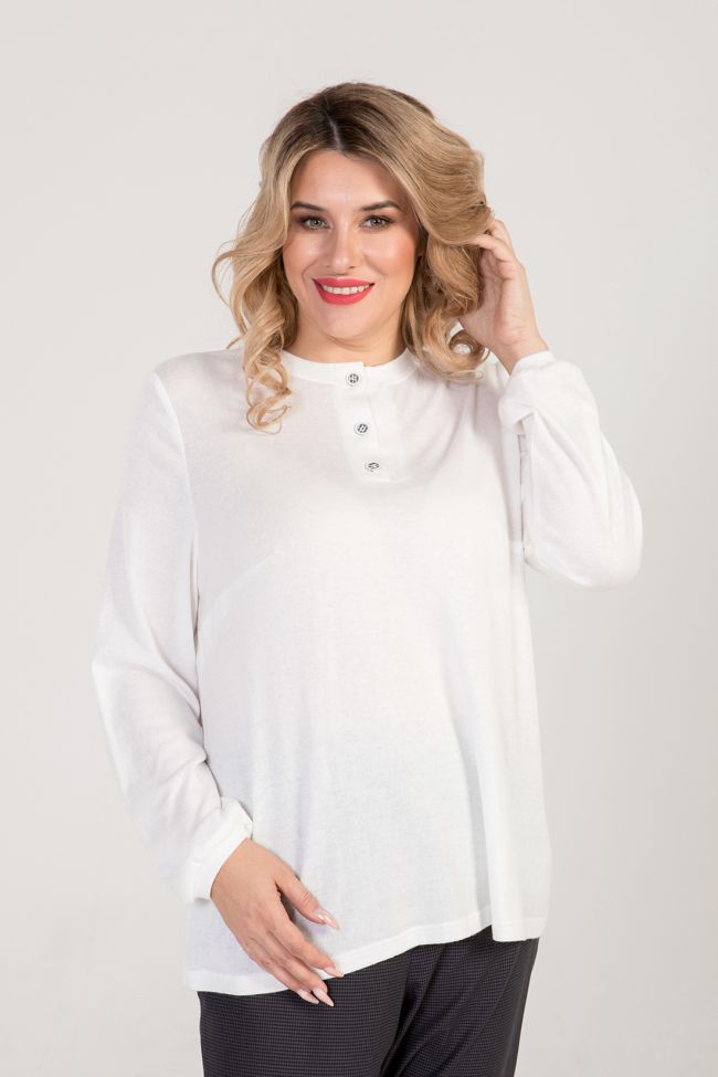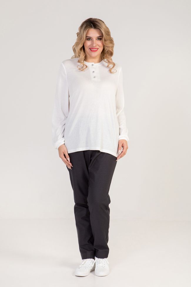 белый Удобный джемпер свободного силуэта из трикотажа "ангора". Прилегание по груди за счет вытачек. Длинный втачной рукав по низу присборен и дополнен манжетом. Круглая горловина дополнена бейкой и планкой на 3 петли и 3 пуговицы. Низ ровный.
