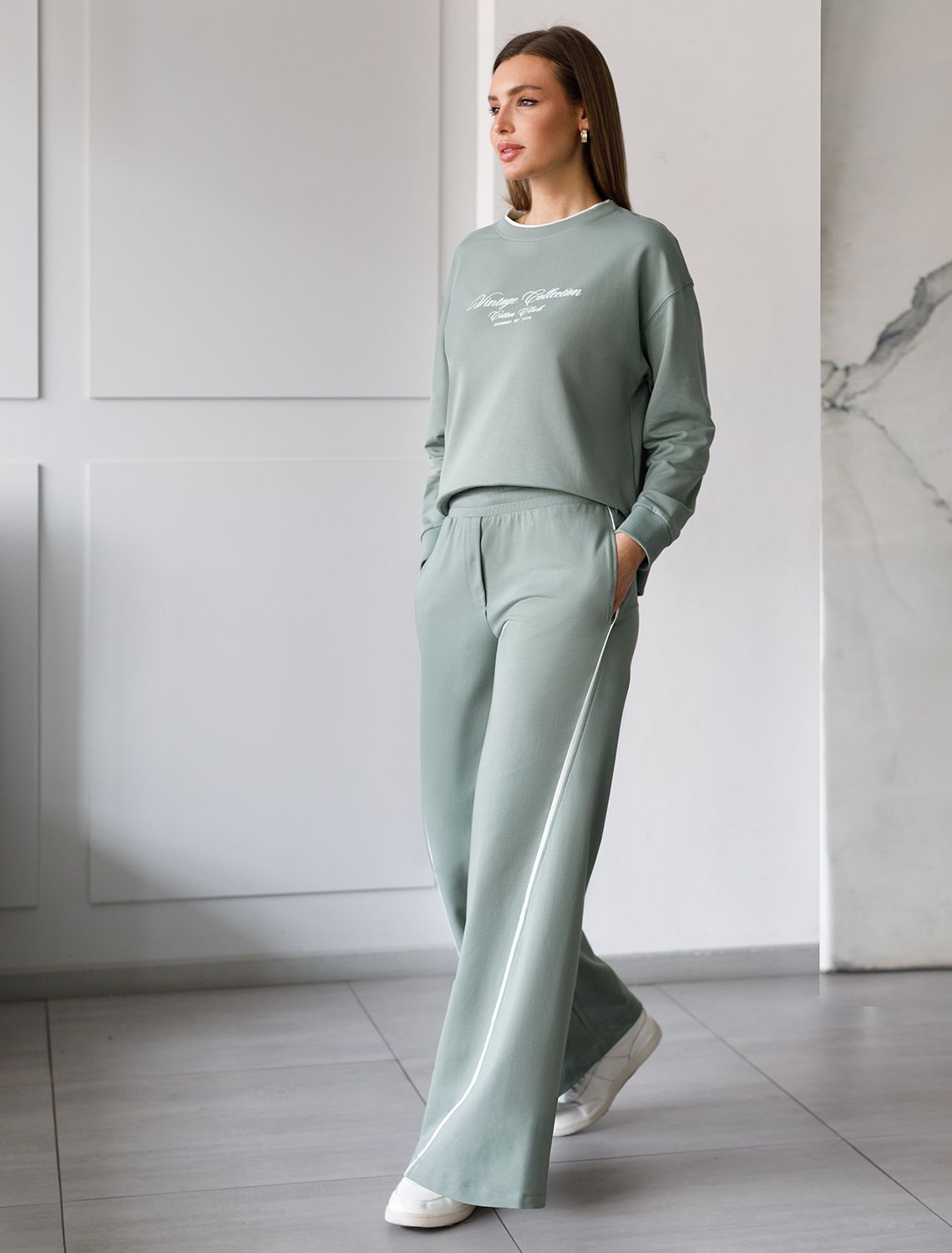 Стильный свитшот светло-оливкового цвета из премиального футера двухнитки с эластаном сочетает в себе комфорт и оригинальность. Джемпер выполнен из натурального хлопка, который обеспечивает мягкость и дышащие свойства ткани. Нежный материал дарит ощущение уюта в любое время года, а премиальное качество изготовления гарантирует долговечность и сохранение формы после множества стирок. Особенность изделия — спущенная линия плеча и аккуратные разрезы, которые добавляют современный акцент и делают образ более выразительным. Эффект имитации футболки в виде белой отделки на вороте делает дизайн динамичным и повышает градус стиля. Принт в виде надписи придает индивидуальность, позволяя выделиться без лишней вычурности. Перевод надписи Vintage collection Cotton club Inspired by 1978 - Винтажная коллекция Cotton Club, вдохновленная 1978 годом. Дополнен металлическим логотипом бренда. Представлена широкая размерная линейка, включая маленькие и большие размеры, что позволяет подобрать идеальный вариант для разной фигуры и роста. Этот уютный свитшот отлично подходит для повседневной носки благодаря своей комфортной посадке и мягкой текстуре. Он станет универсальным элементом гардероба, легко сочетающимся с различными стилями одежды. Свободный джемпер из футера станет отличным выбором для активного отдыха, обеспечивая стильный внешний вид и удобство весной, летом или в прохладную погоду.