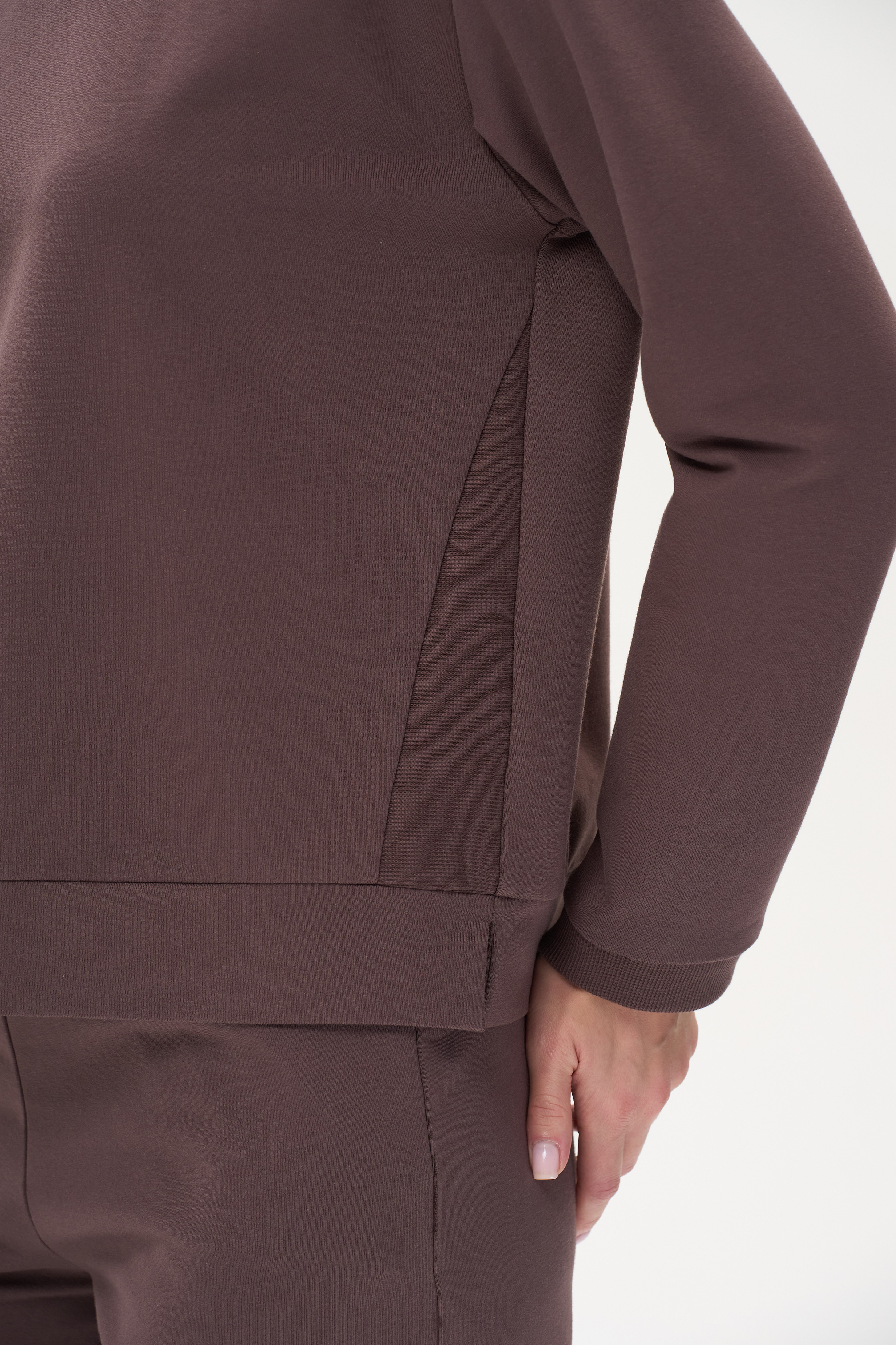 Универсальный джемпер из футера в благородном кофейном цвете. Джемпер можно сочетать в многослойном образе, с рубашкой и жакетом.