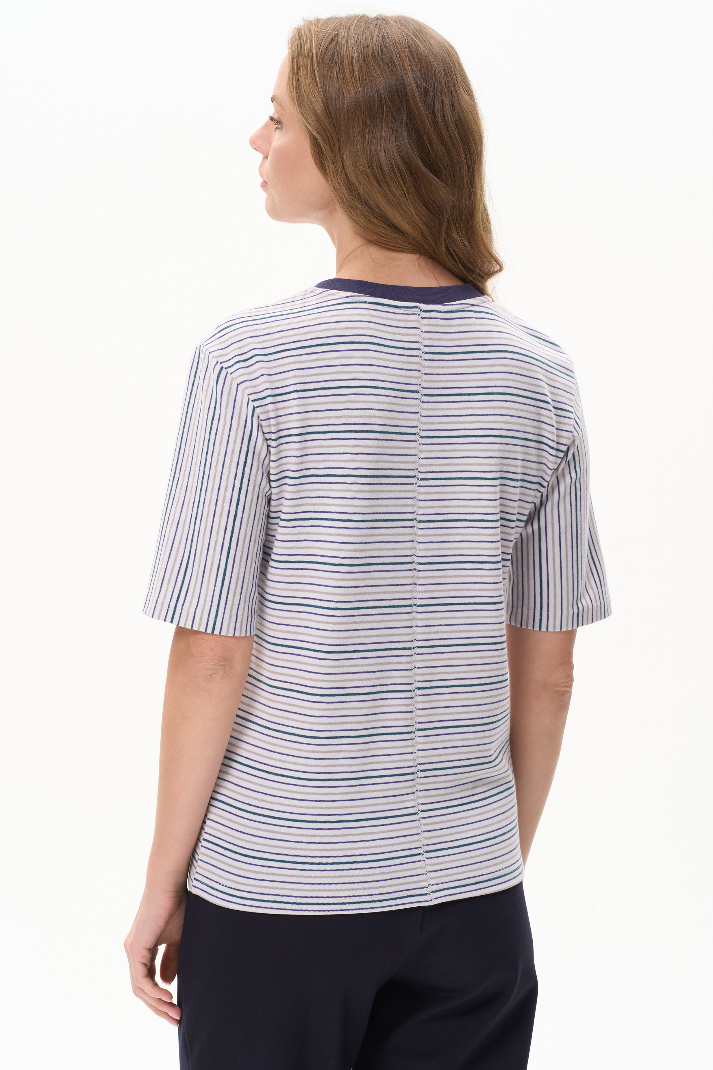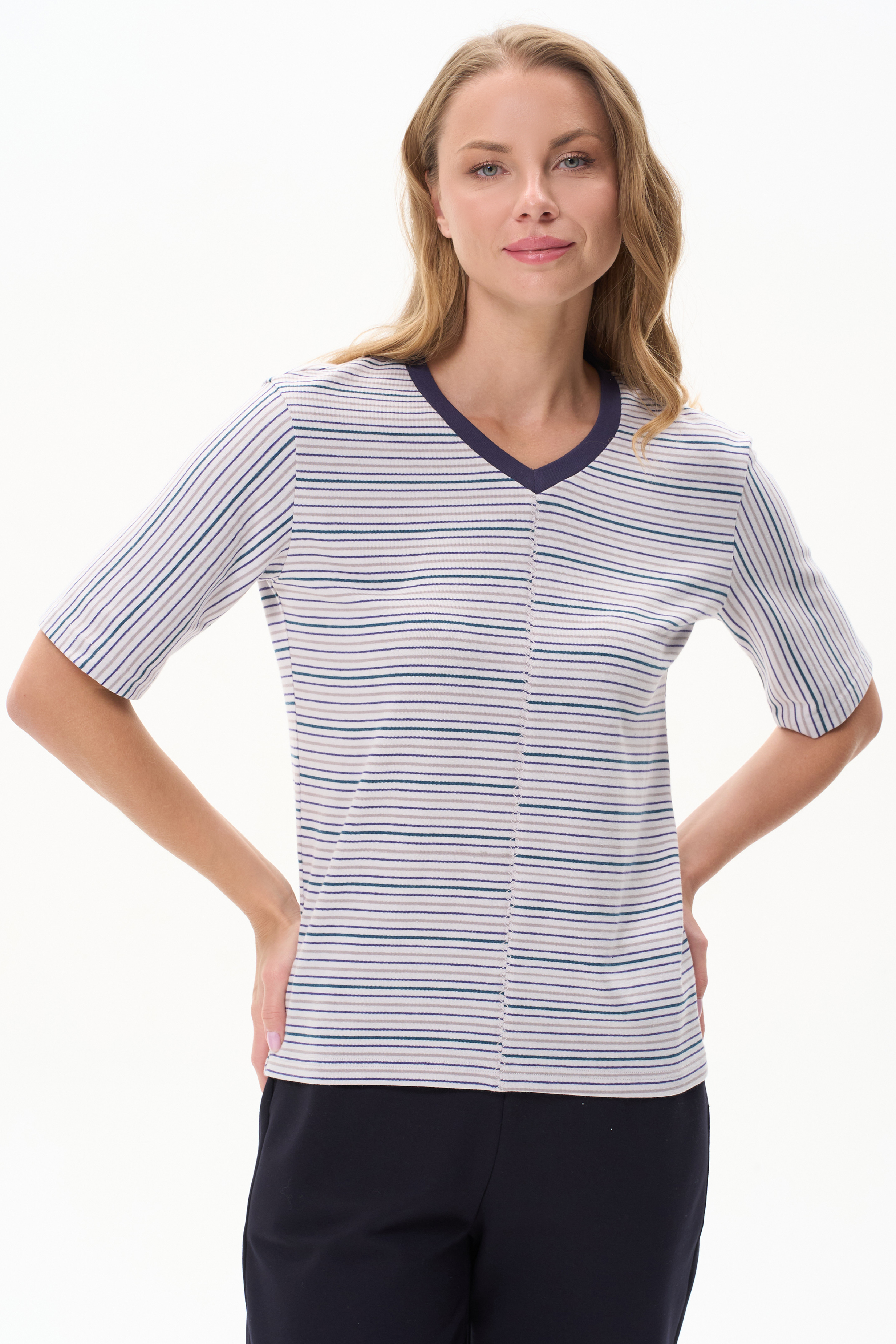 Джемпер с коротким рукавом из вязаного плотного двустороннего полотна. Хлопковый состав с небольшим добавлением ПЭ даёт мягкость и ощущение теплоты. Тактильно очень приятное.
